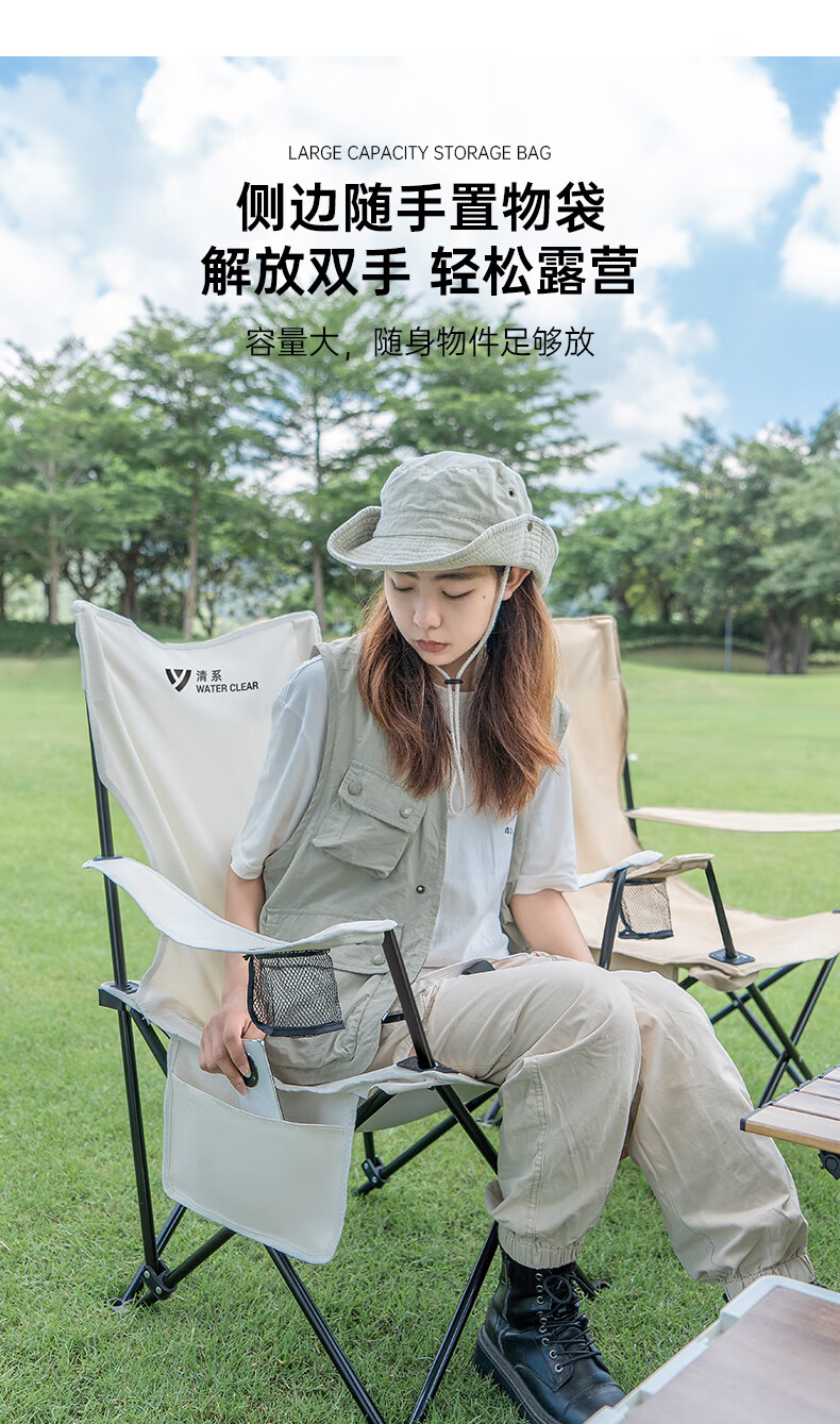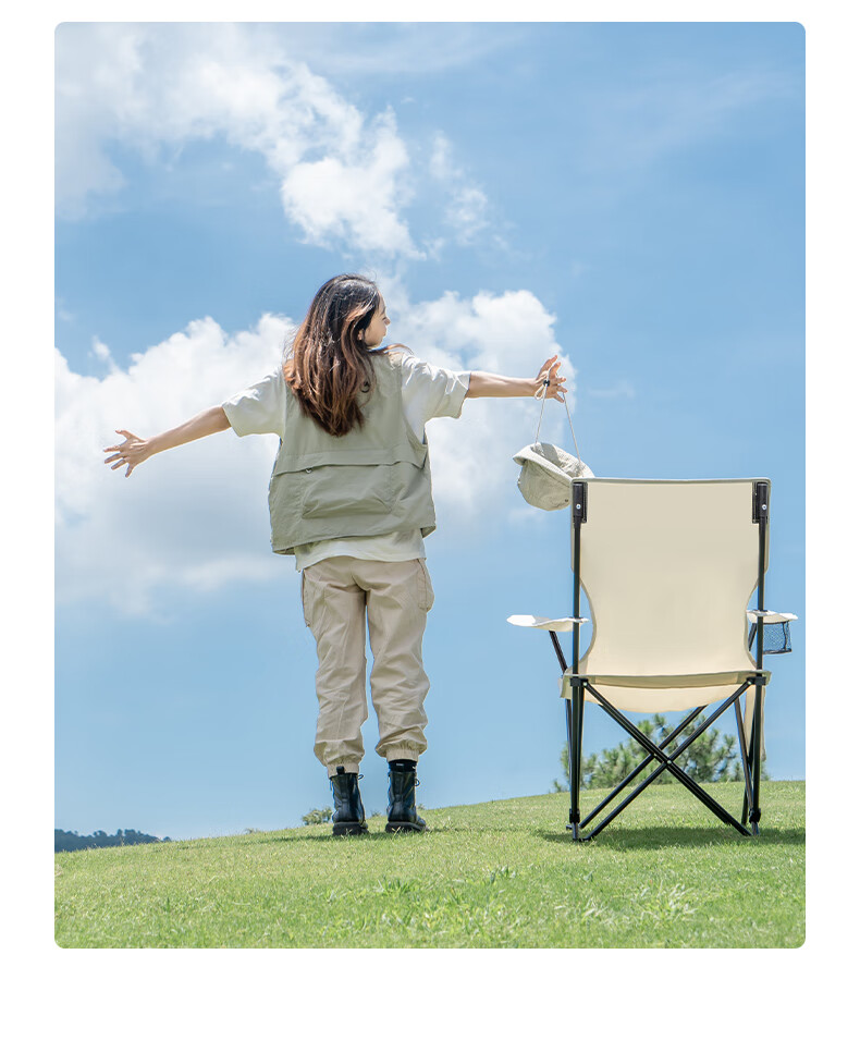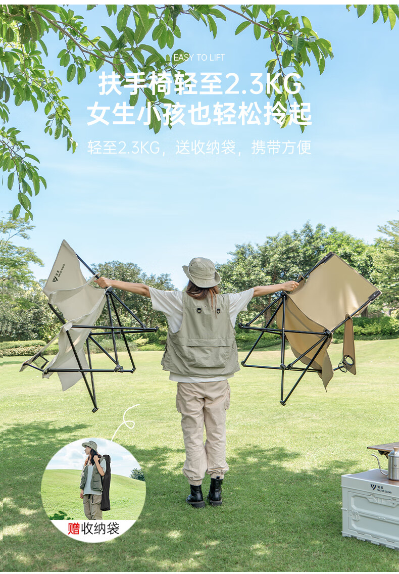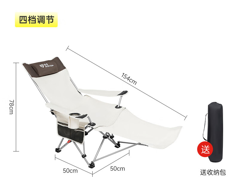 椅子重量合适,一只手拎着走,放置袋还有提手,很是方便。四档调节座椅靠背角度,保证人体的休息舒适度。户外露营休闲,吹着自然风,很是惬意。