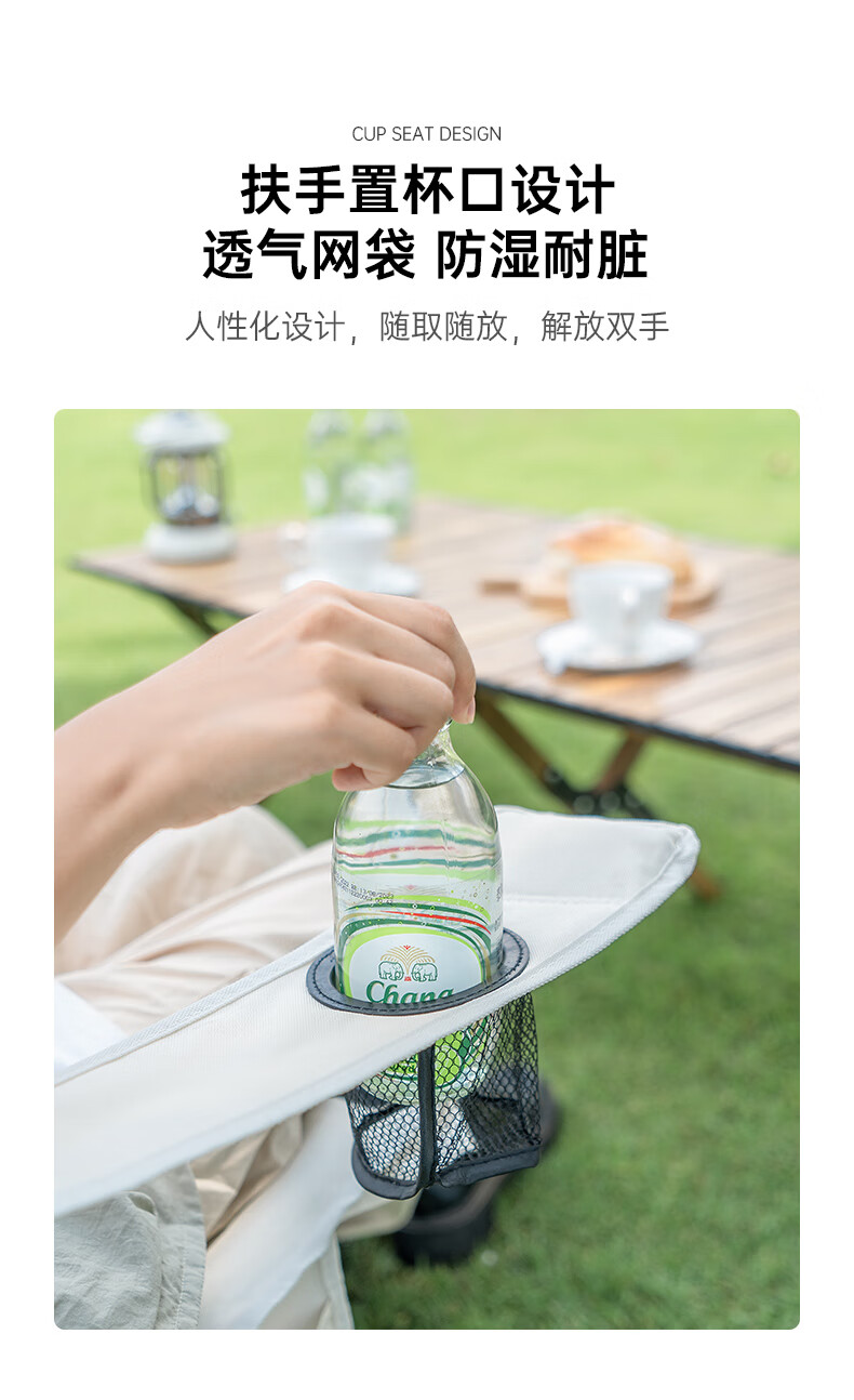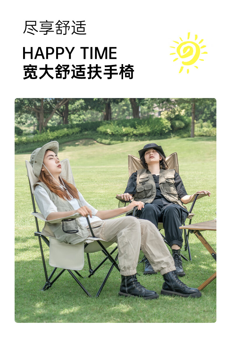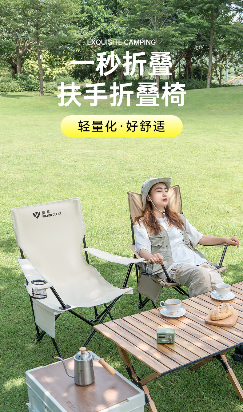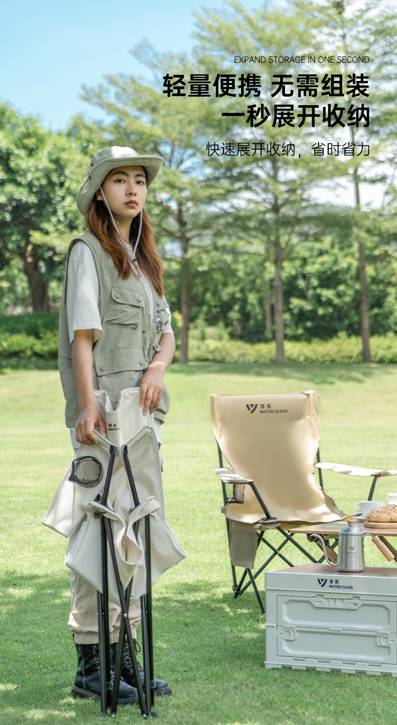 椅子重量合适,一只手拎着走,放置袋还有提手,很是方便。四档调节座椅靠背角度,保证人体的休息舒适度。户外露营休闲,吹着自然风,很是惬意。