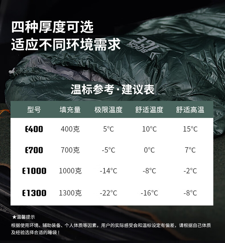一次性买了三个黑**袋,虽然是E700,但是在外面露营,周围温度七八度的时候感觉很热。每一个睡袋通过扫码正品确认,黑**袋果然名不虚传,使用起来非常好。