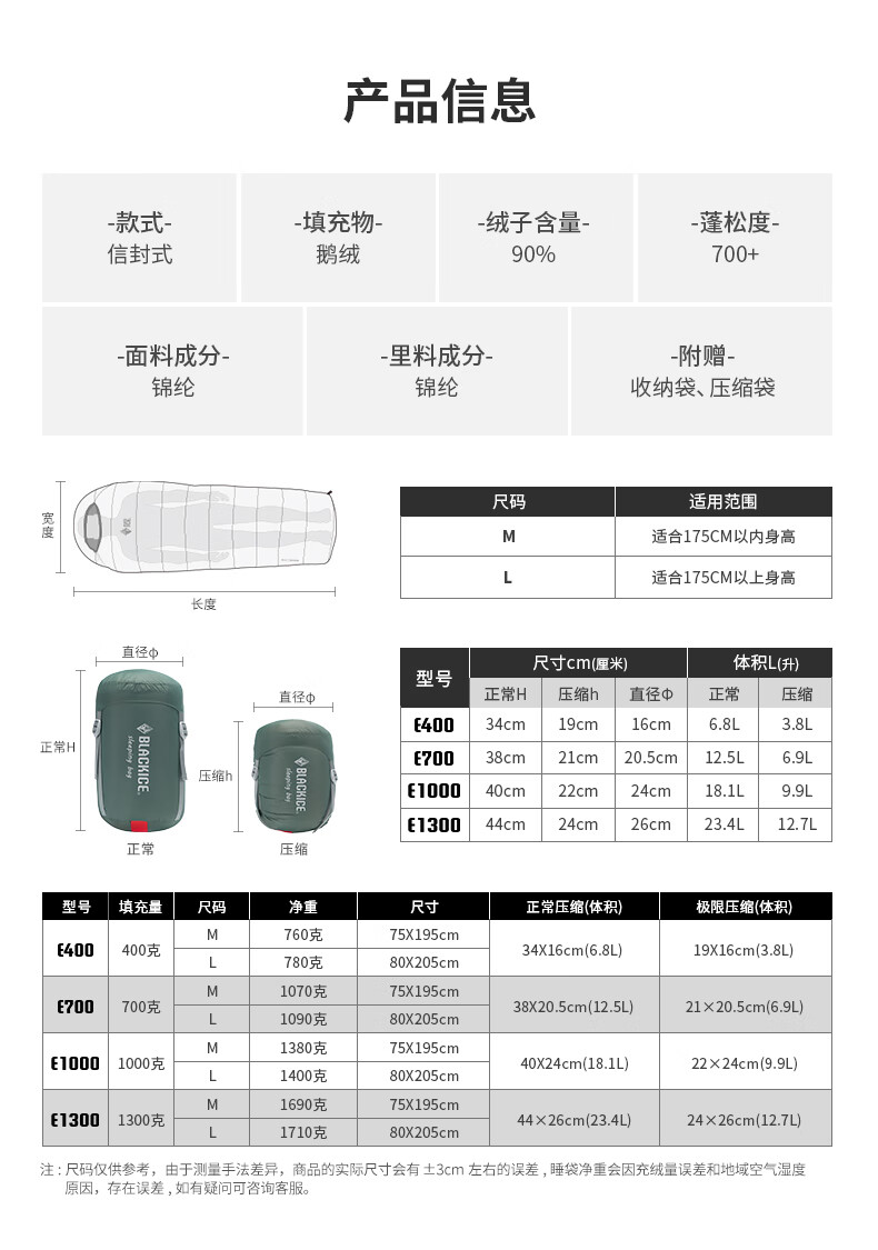 黑冰羽绒睡袋户外G400|G700|G1000|G1300鹅绒露营超轻睡袋可拼接情侣 新标准红色G200-联系客服优惠 M-174身高以下