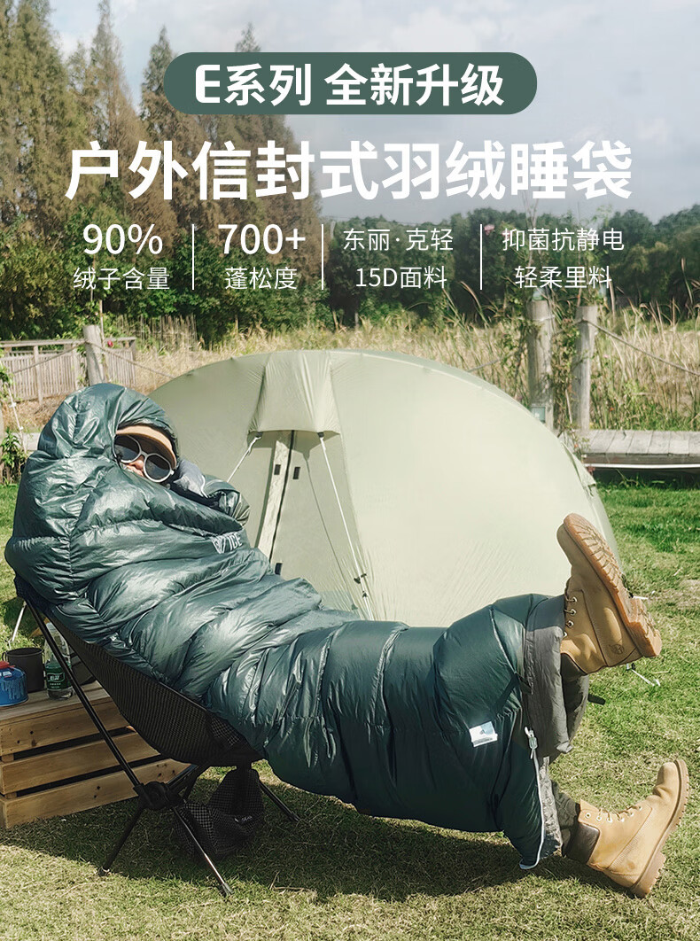 双十一活动买的,到货没几天出来摩旅,正好赶上河南与山西交界的三门峡山区下雪,摩托车毕竟是两轮的,担心打滑,就在一个叫五道川的服务区(属于河南三门峡市卢氏县)搭帐篷睡了一晚上,睡前气温0度左右,后半夜可能零下1度吧,我买的E700,晚上很暖和,即使受潮了,蓬松度也很好,通过官网查询,是正品