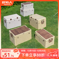 原始人户外露营折叠箱收纳储物置物箱子整理野营用品便携式折叠桌 可侧开卡其35L【赠木质桌板】