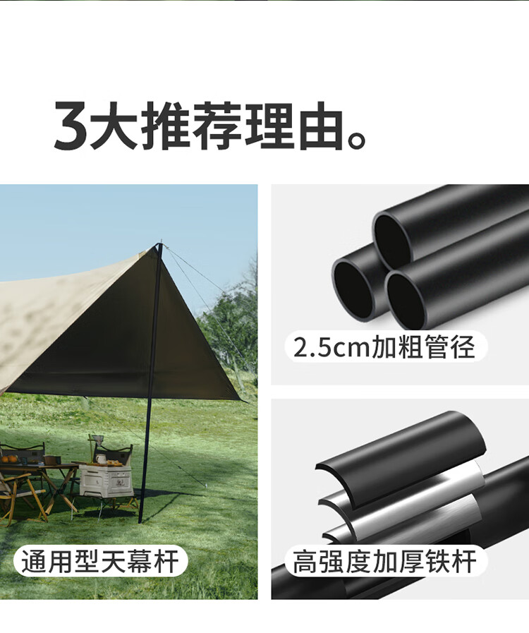 太力户外帐篷门厅杆天幕支撑杆户外露营天幕配件 1.5米 两根装 黑色门厅杆一对150cm
