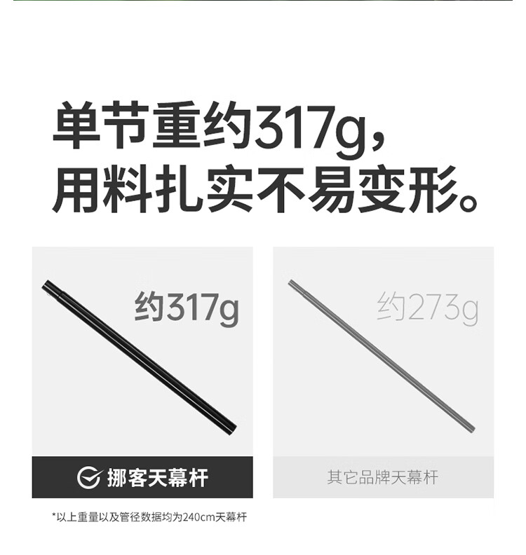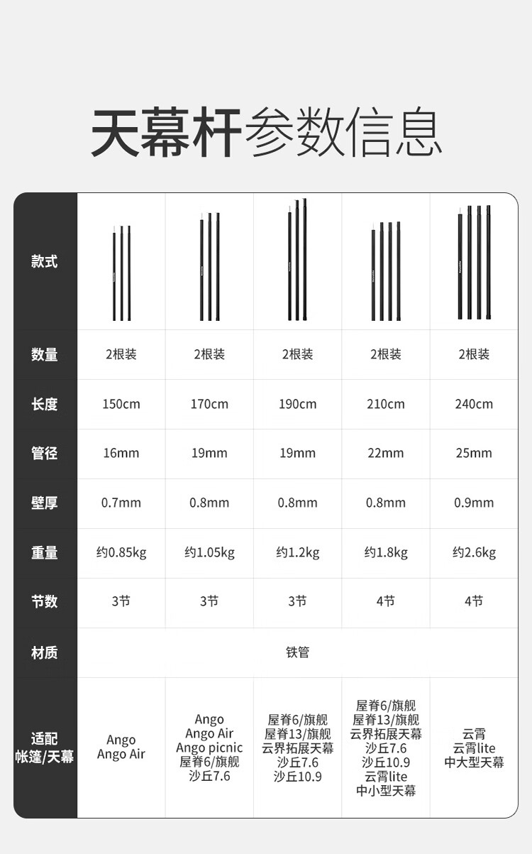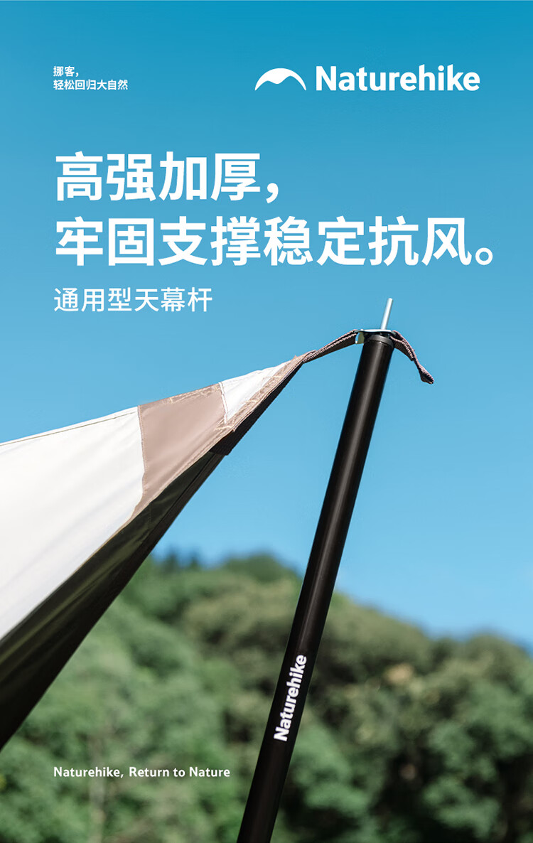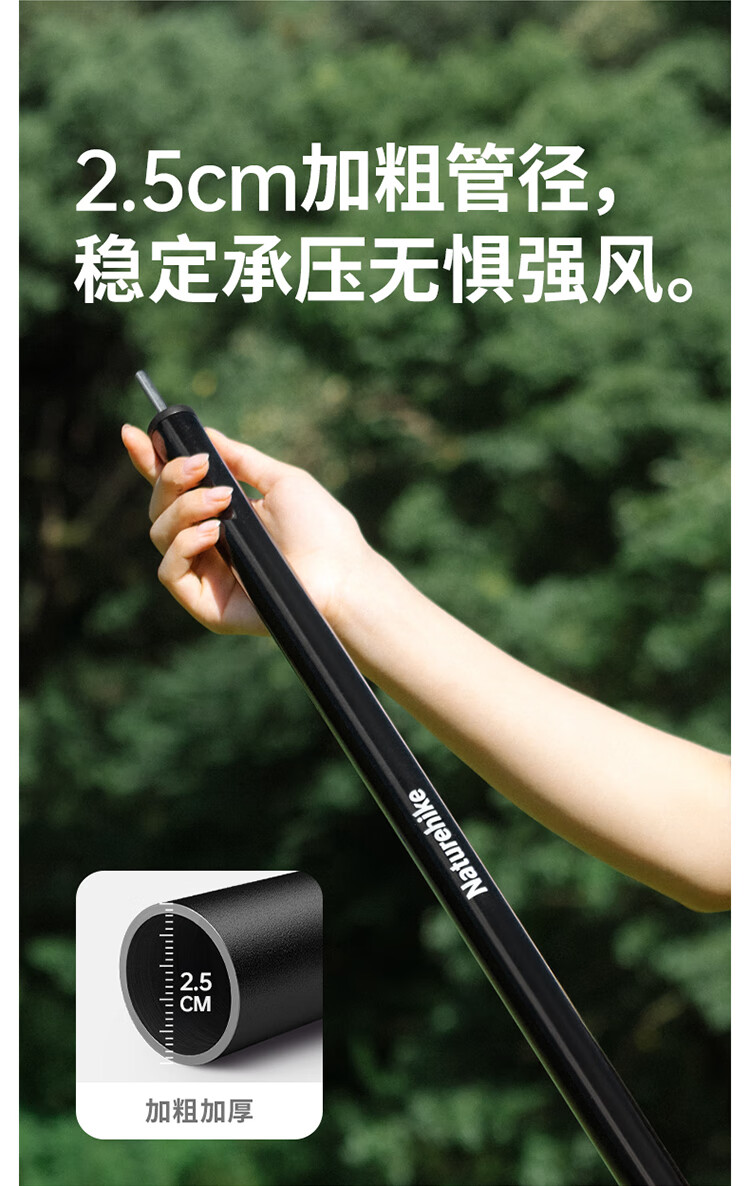 Naturehike挪客天幕杆户外露营帐篷门厅杆高强加厚一杆多用天幕支撑杆配件 黑色/1.5米/铁【2根装】