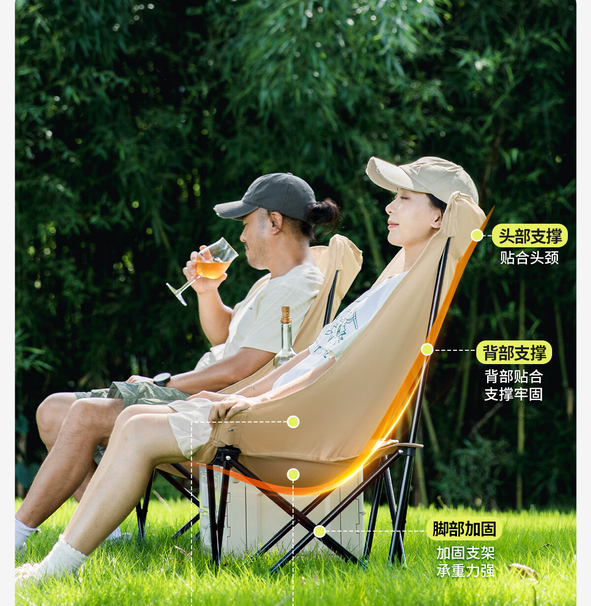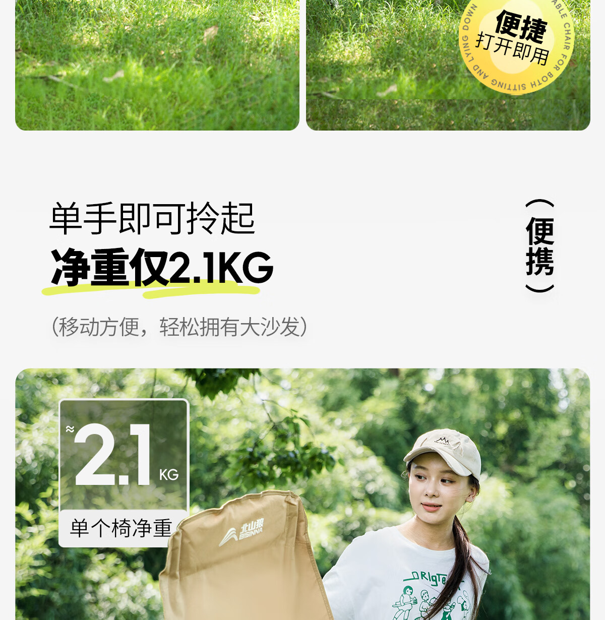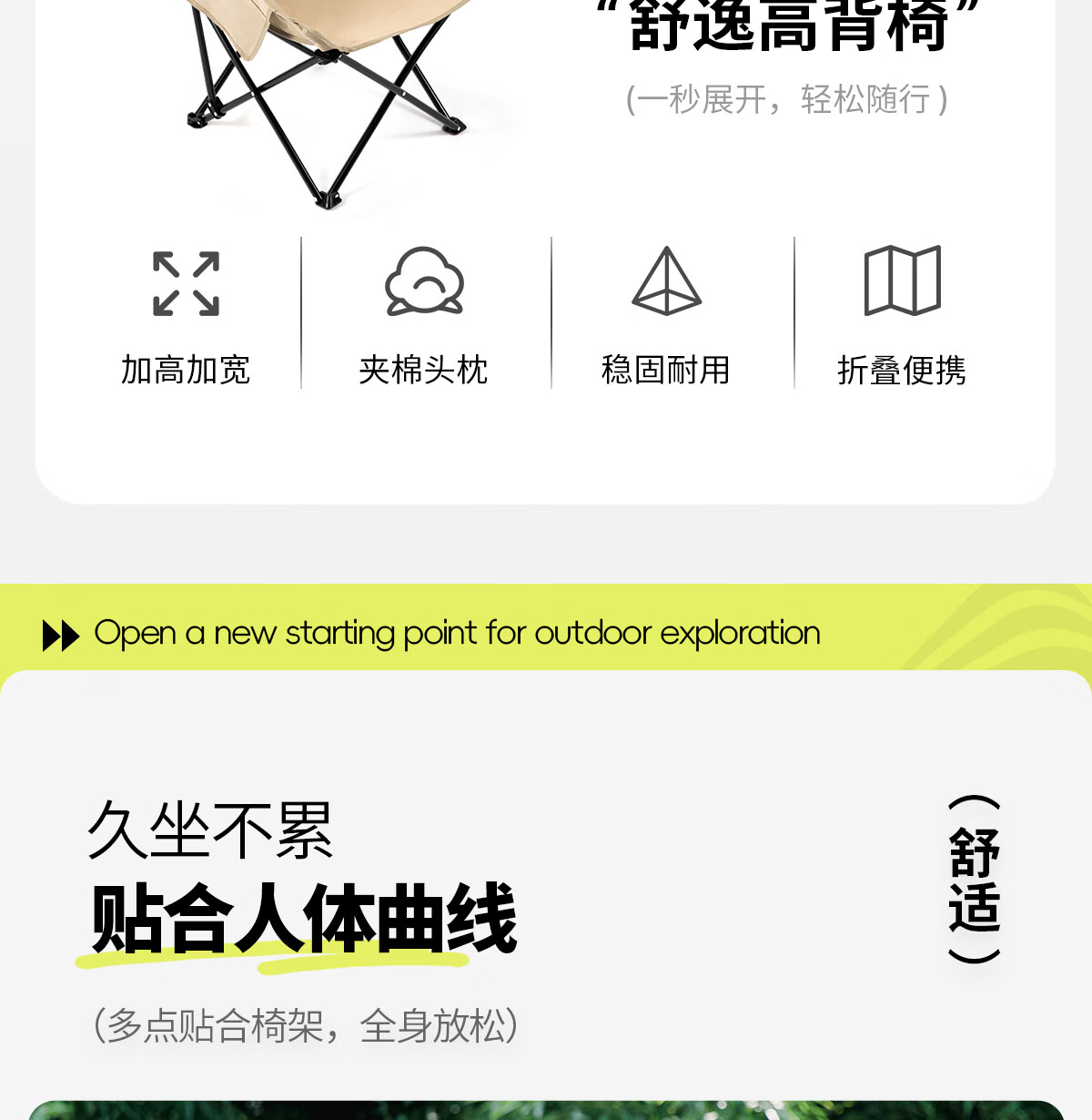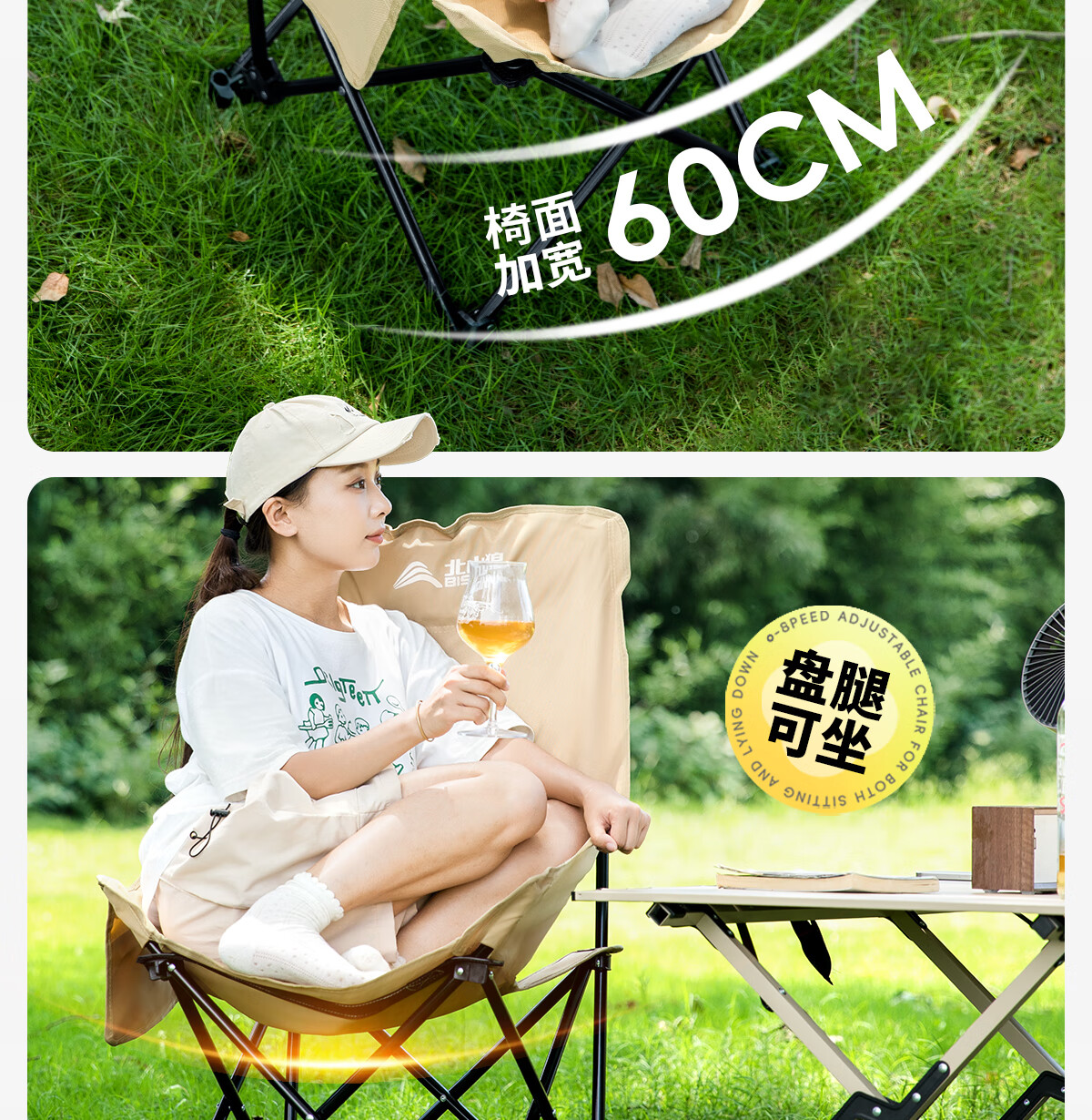 北山狼 户外折叠椅 加高靠背椅加厚钢管月亮椅露营折叠凳子便携躺椅 【加高加厚】— 卡其黄