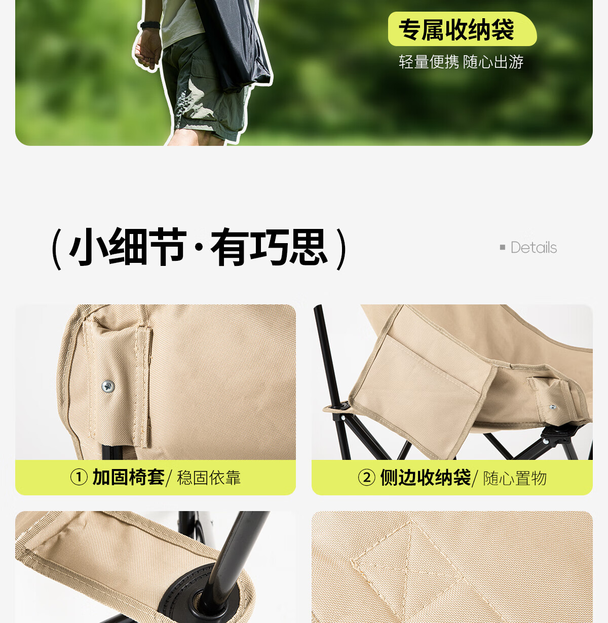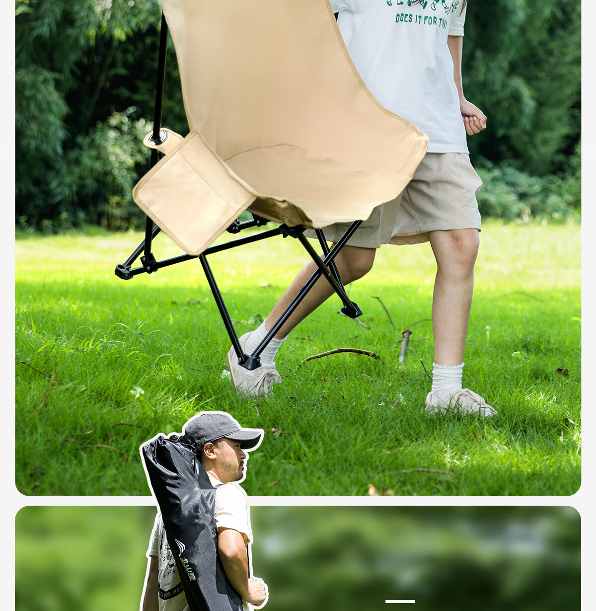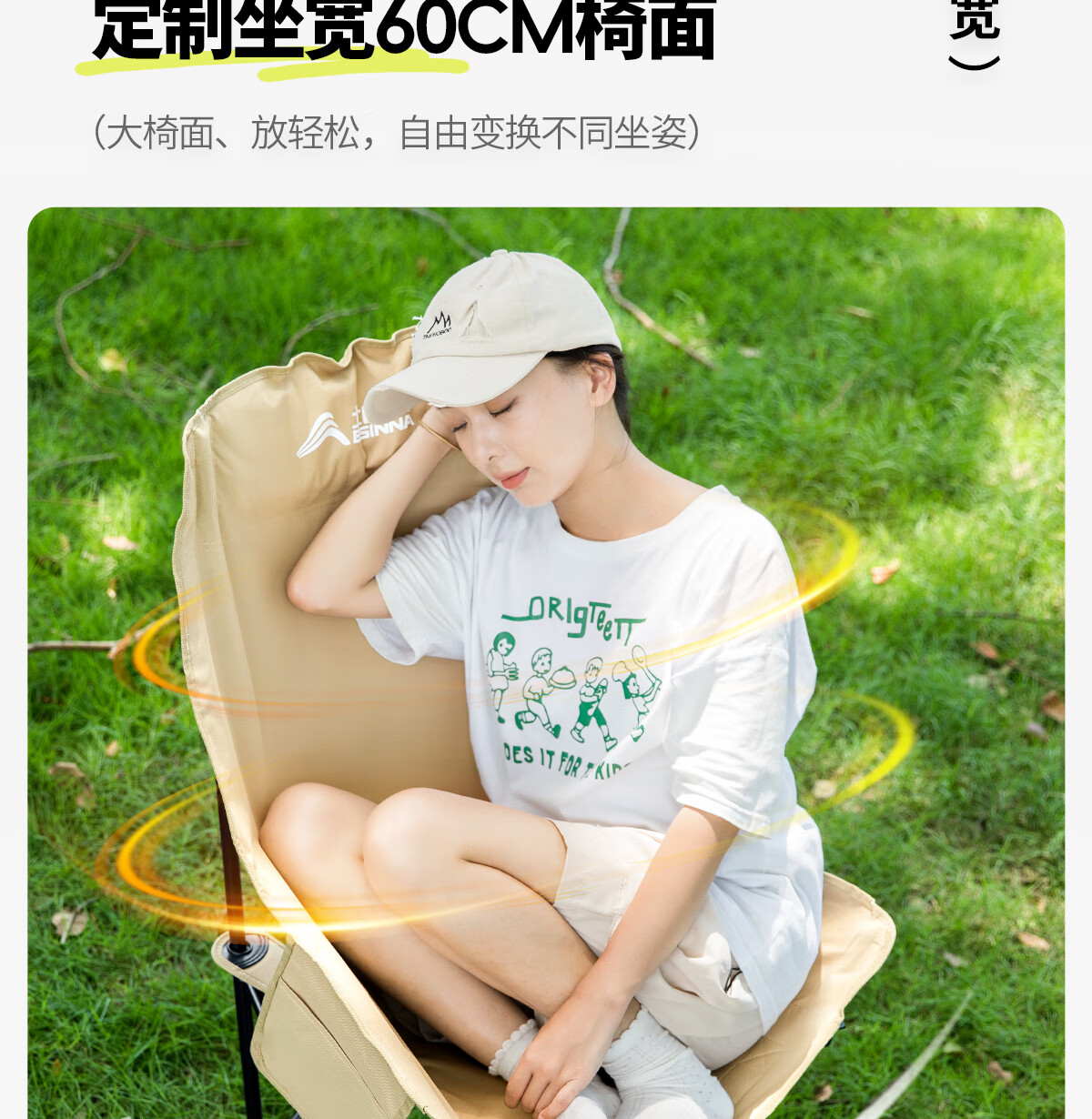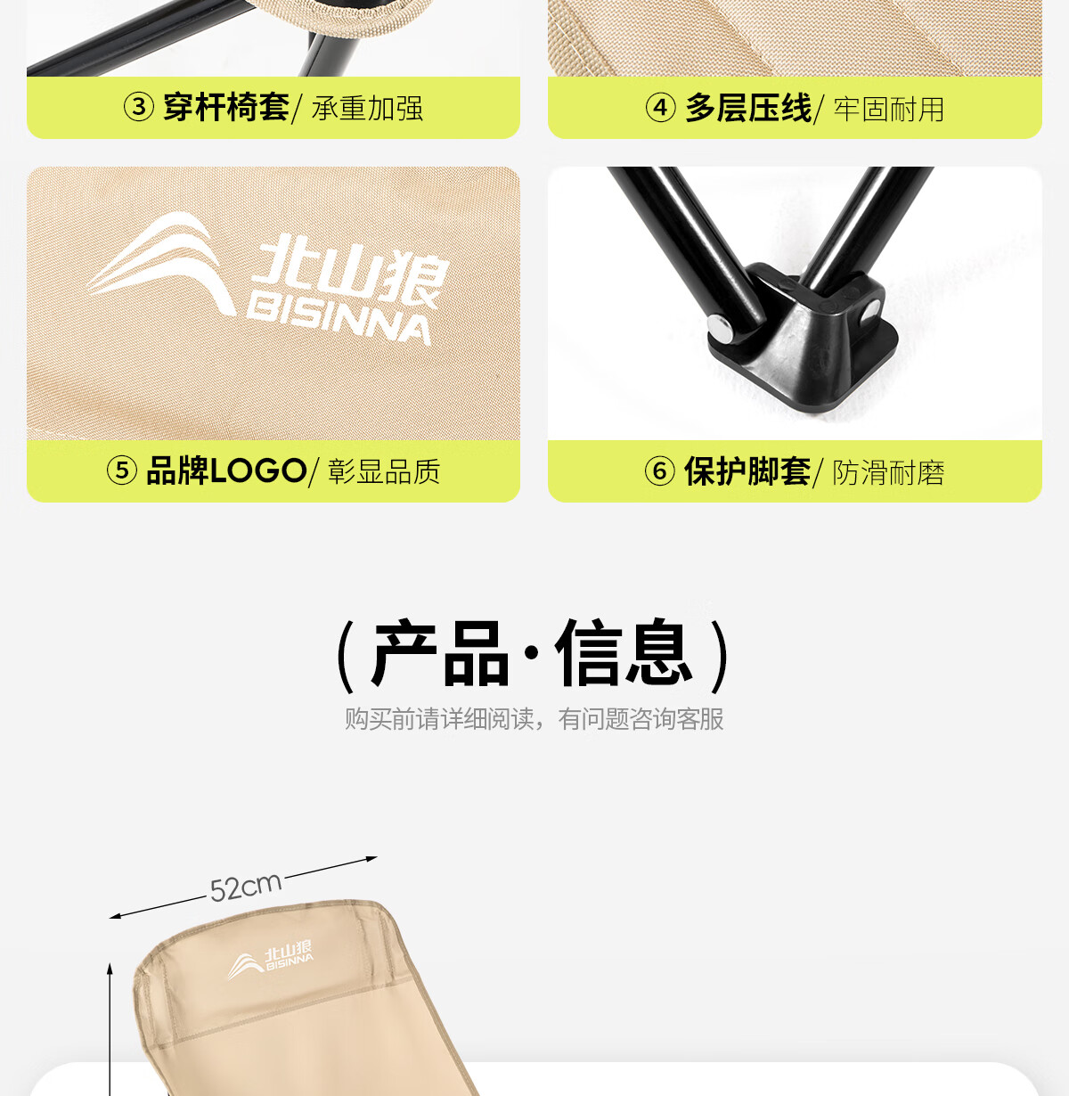 北山狼 户外折叠椅 加高靠背椅加厚钢管月亮椅露营折叠凳子便携躺椅 【加高加厚】— 卡其黄