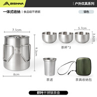 北山狼 不锈钢户外茶具便携功夫泡茶器隔热防烫旅行煮茶套装 0.3L茶壶+茶杯*3【食品级不锈钢