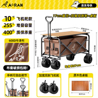 Aoran户外露营车推车折叠便携式营地车野营车拖车野餐车摆摊车露营装备 255L咖色推车+桌板