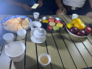 产品做工:做工细致,桌面平整,钢管厚实 重量大小:尺寸95×55×50,坐着月亮椅高度正合适 适用人数:4~6人 适用场景:户外露营,烧烤都不错 用料很扎实,桌子很稳当,颜色也不错,推荐