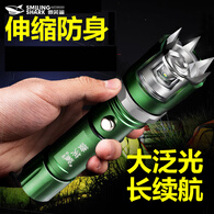 微笑鲨 强光手电筒 户外徒步防身防狼可充电 调焦变焦骑行远射防水狼牙手电 黑色【平头款】Q5灯珠【1电池套餐】