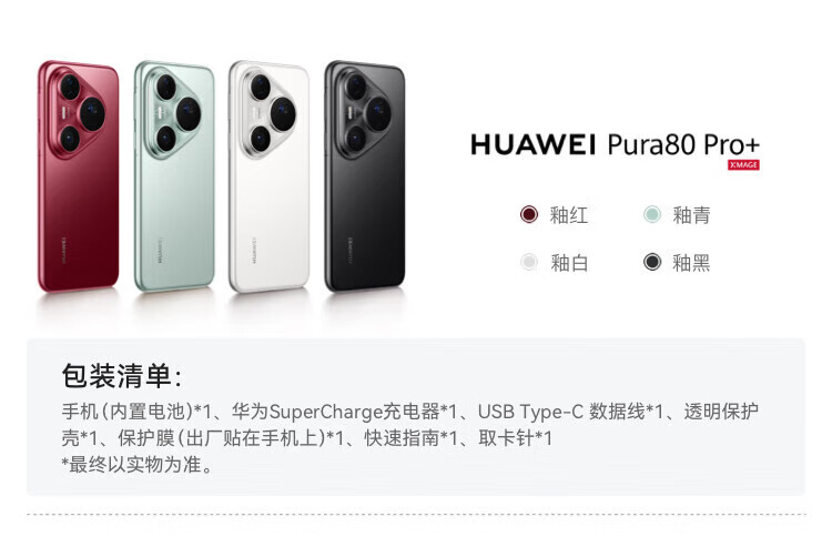 HUAWEI Pura 80 Pro+ 一英寸高动态主摄 个性色卡AI辅助构图 华为p80鸿蒙智能手机 釉白 16GB+512GB 官方标配