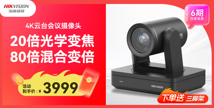 HIKVISION海康威视会议摄像头800万4k超清自动聚焦内置双麦克风免驱会议视频网课远程云台旋转摄像机V108。。。