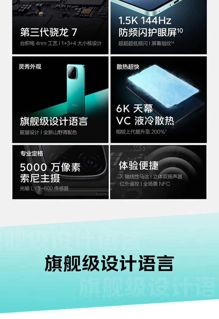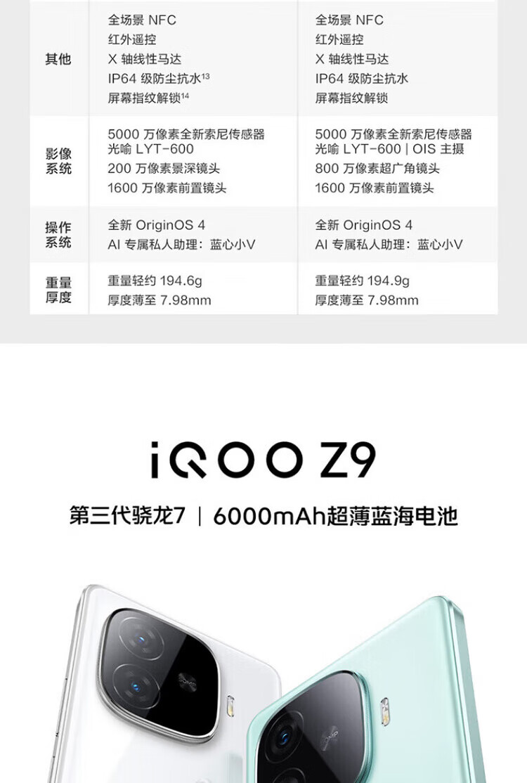 vivoiQOO Z9 6000mAh 蓝海电池 1.5K 144Hz 护眼屏 第三代骁龙7 手机 曜夜黑 8GB+128GB