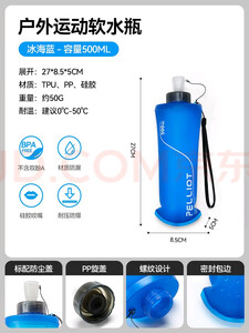 伯希和(Pelliot)户外软水壶折叠便携登山徒步越野跑骑行运动爬山跑步软水袋 冰海蓝500ml 【倒置不漏水】
