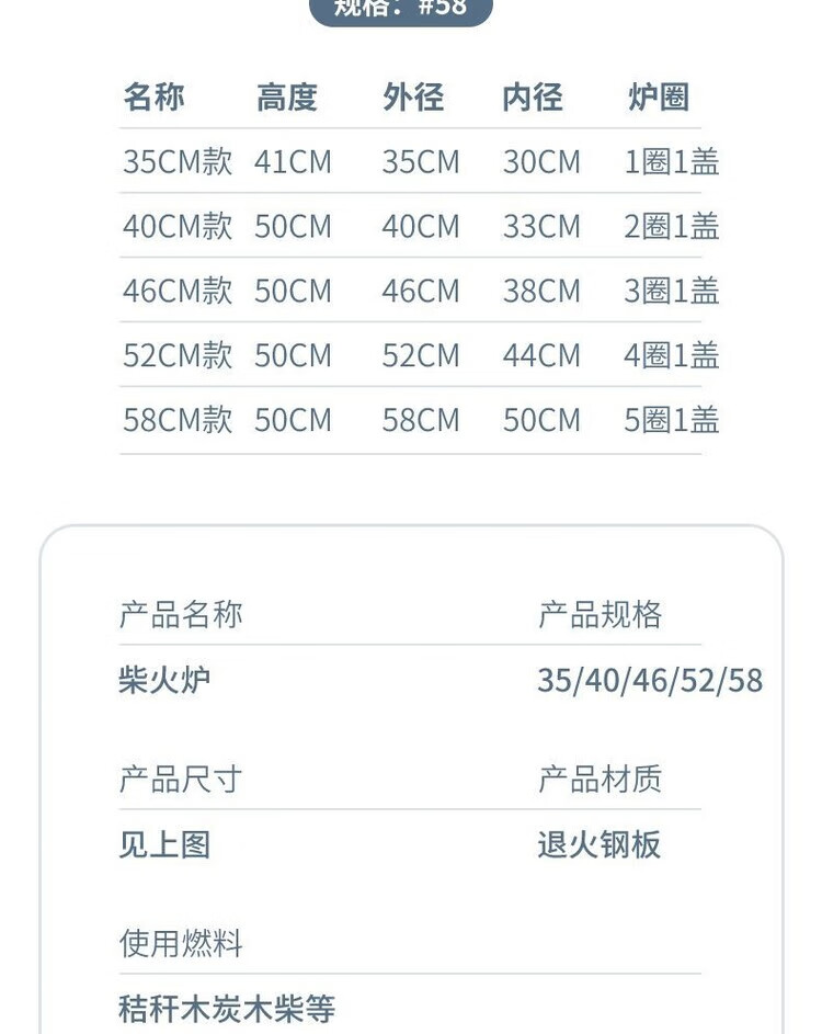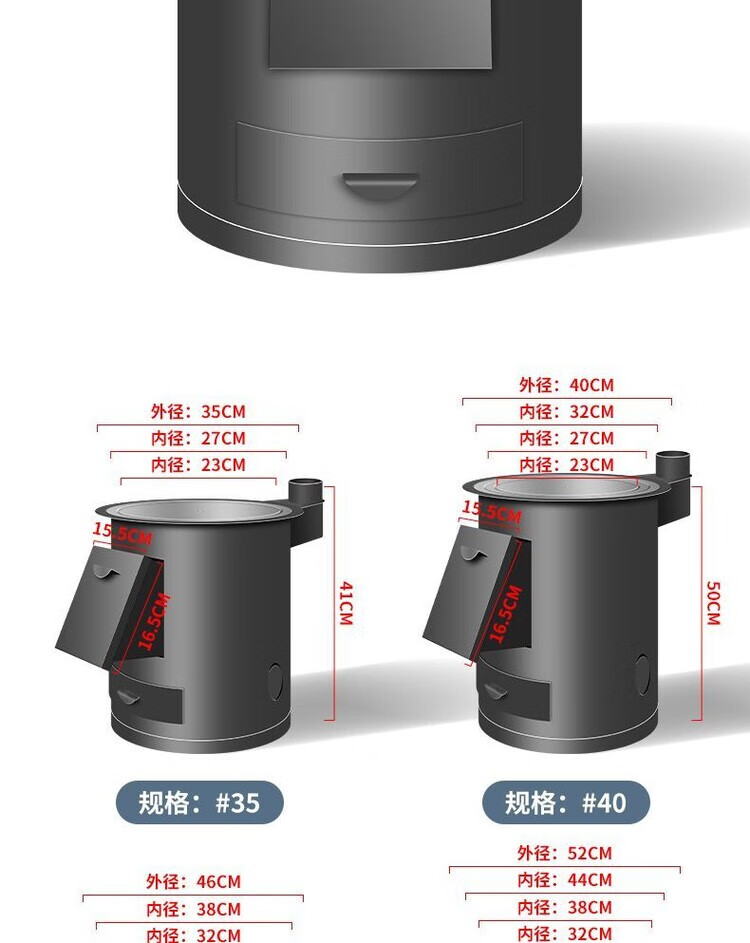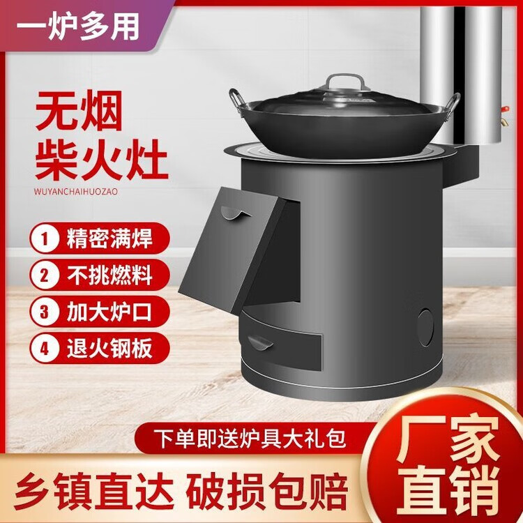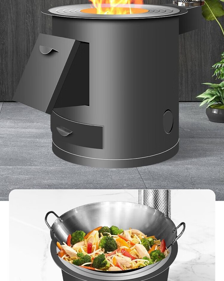 柴火灶家用农村室内户外烧木柴铁大锅灶台炉移动新型节能便携庭院 40cm黑圆桶+40锅3米烟管配件
