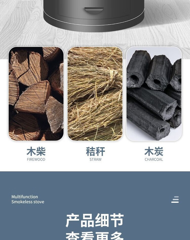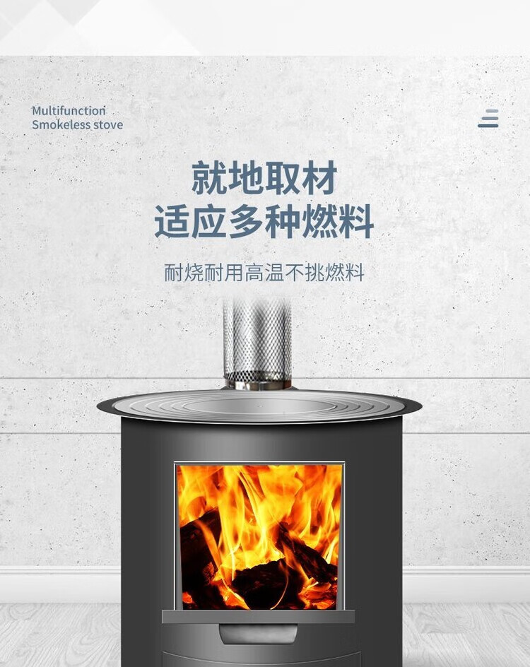 柴火灶家用烧木柴铁大锅台农村无烟取暖炉子移动新型节能便携庭院 30cm新黑圆桶+35cm烟管