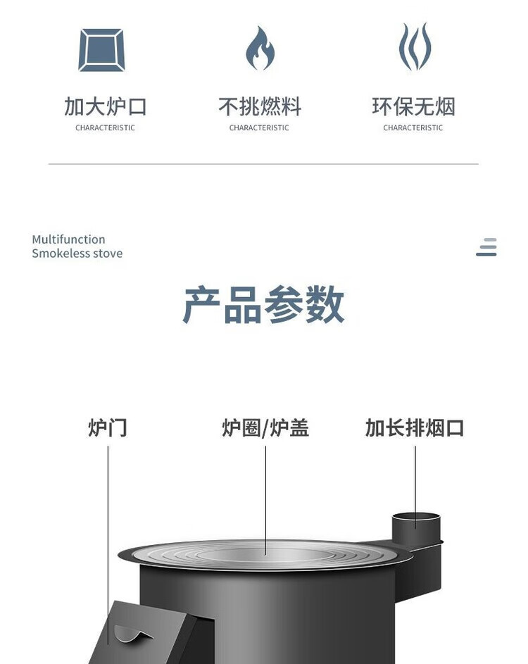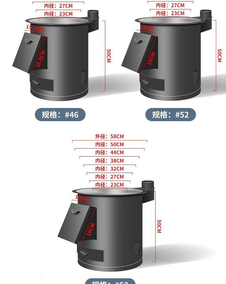 柏潮加厚钢板炉柴火炉木炭炉围炉煮茶取暖户外烧烤家用多功能烧煤煮饭 大号便捷炉N
