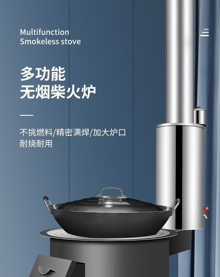 室内气化无烟取暖炉柴煤两用柴火灶水箱农村烧木柴煤炭移动大锅台 60CM 固定内胆款+3米2弯+