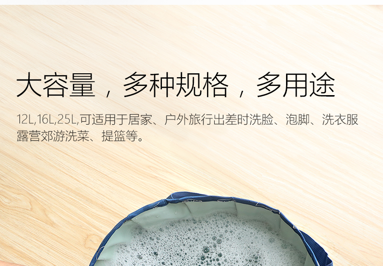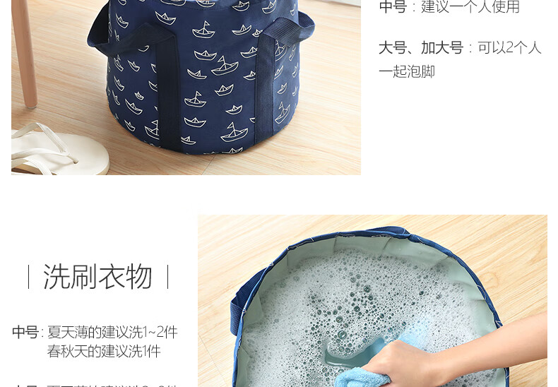 为出去旅游购买了这款折叠泡脚桶,到货很快,产品用料很厚实,做工精细,不是粗制滥造的东西,携带方便,结实耐用,用来泡脚,洗衣服都很好用。