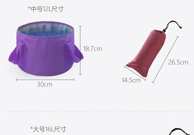 出门旅游洗衣服一直都是个麻烦事,在网上找了好久才选到这款折叠洗衣桶,尺寸还可以,够深,防水很好,收纳起来也非常方便,还配有收纳袋,出门非常合适!