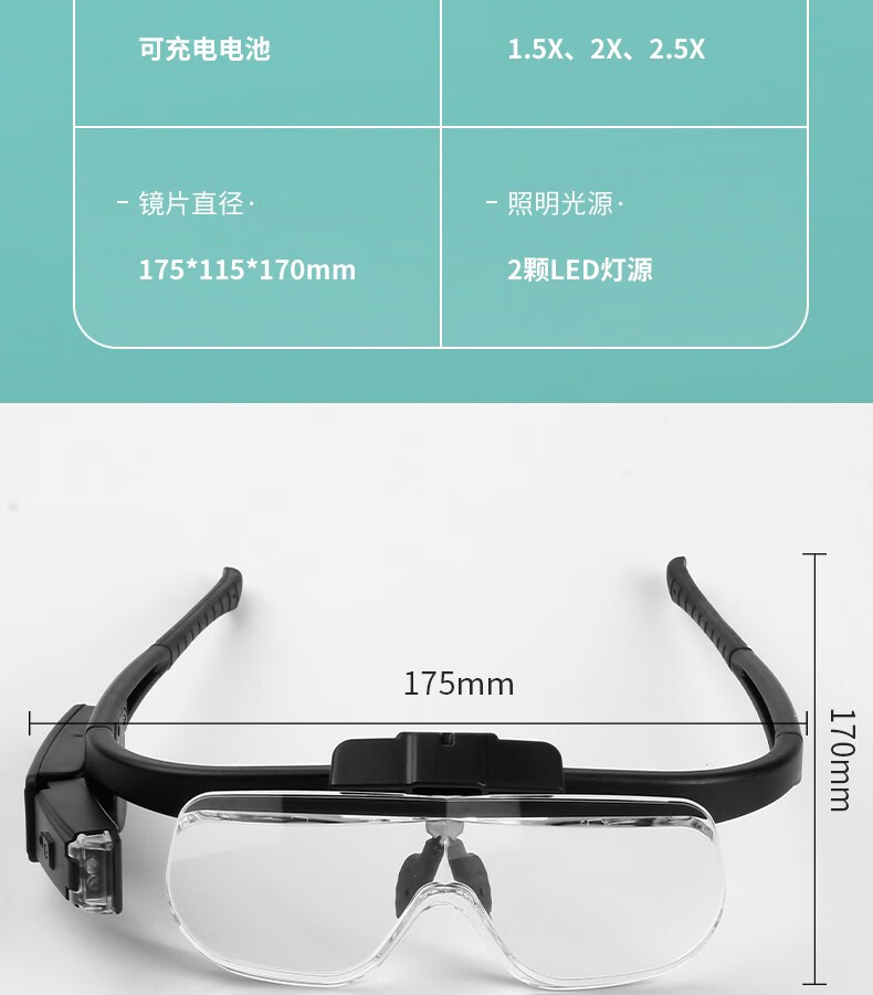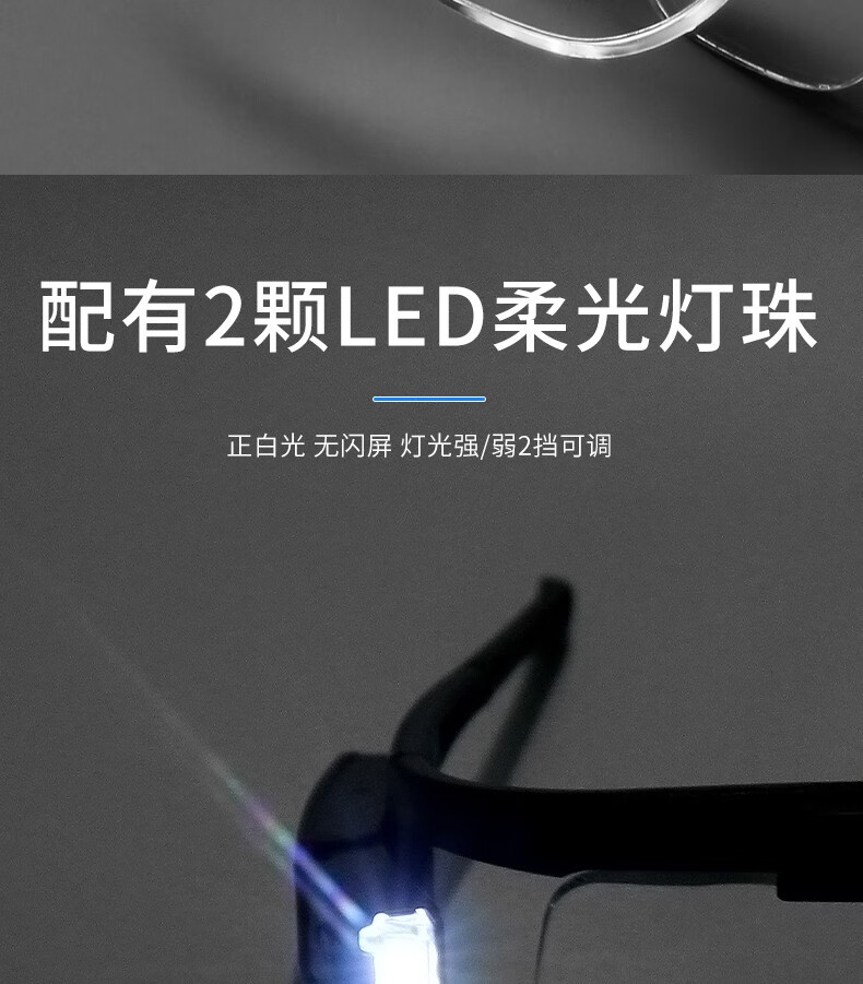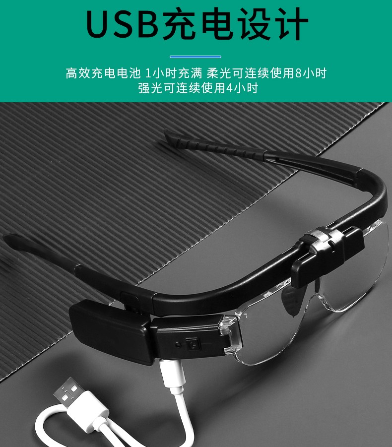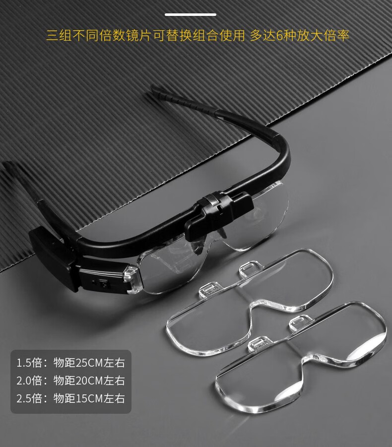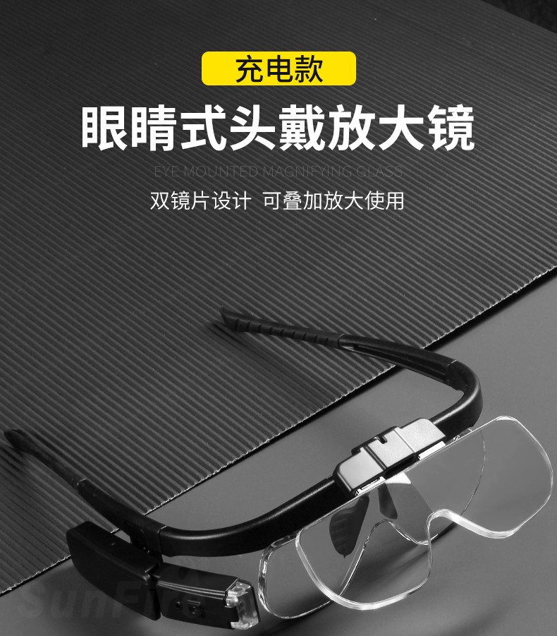 太阳火(SunFire)USB充电高清头戴眼镜放大镜带LED灯电子检查维修嫁睫毛高倍30手工 带LED灯收纳包3组镜片