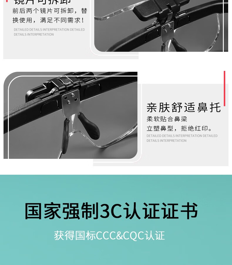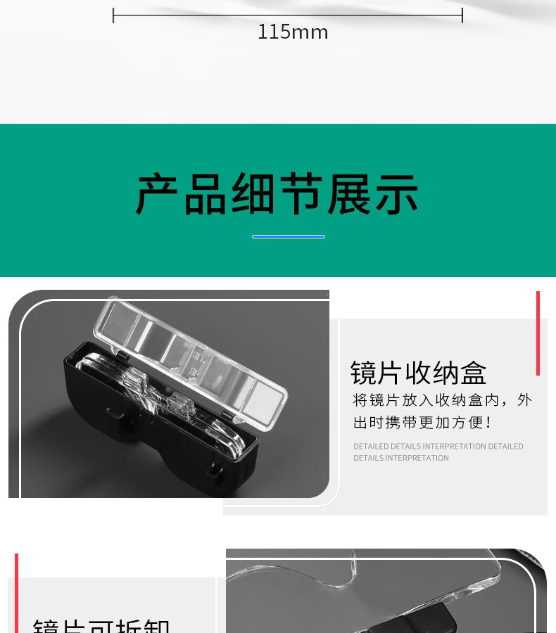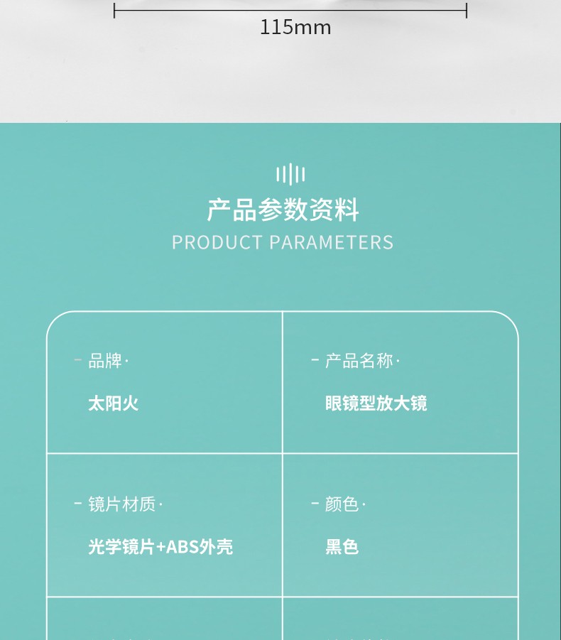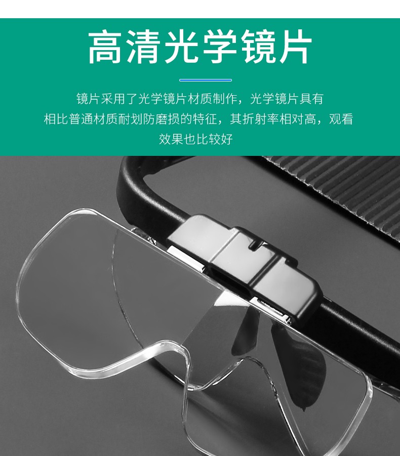 太阳火头戴式眼镜放大镜是一款非常实用的光学仪器,它具有以下优点: 1. **高清晰度**:太阳火头戴式眼镜放大镜采用高品质镜片,能够提供清晰的视觉体验,让你看到更多的细节。 2. **轻便舒适**:这款眼镜采用轻盈的材质制成,佩戴起来非常舒适,不会给头部带来负担。 3. **可调节角度**:太阳火头戴式眼镜放大镜可以调节角度,让你可以根据自己的需求调整镜片的视角,更加方便实用。 4. **防眩光设计**:这款眼镜采用了防眩光技术,可以有效避免外界光线对眼睛造成干扰,提高你的视觉舒适度。 5. **性价比高**:相比同类产品,太阳火头戴式眼镜放大镜的价格非常实惠,性价比非常高。 总的来说,太阳火头戴式眼镜放大镜是一款非常优秀的光学仪器,适合用于各种场合,如阅读、学习、办公等。如果你需要一款高质量的放大镜,那么这款太阳火头戴式眼镜放大镜绝对值得你考虑。