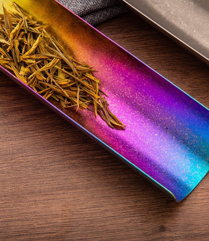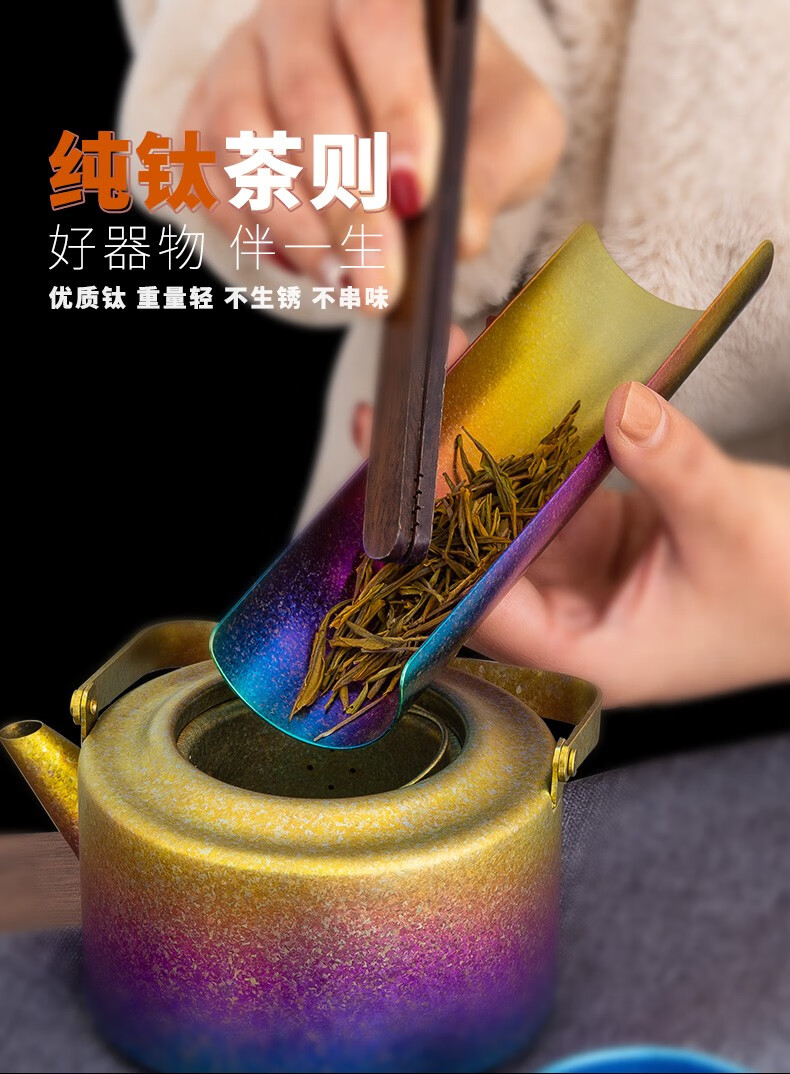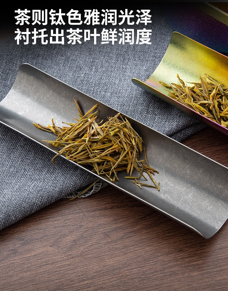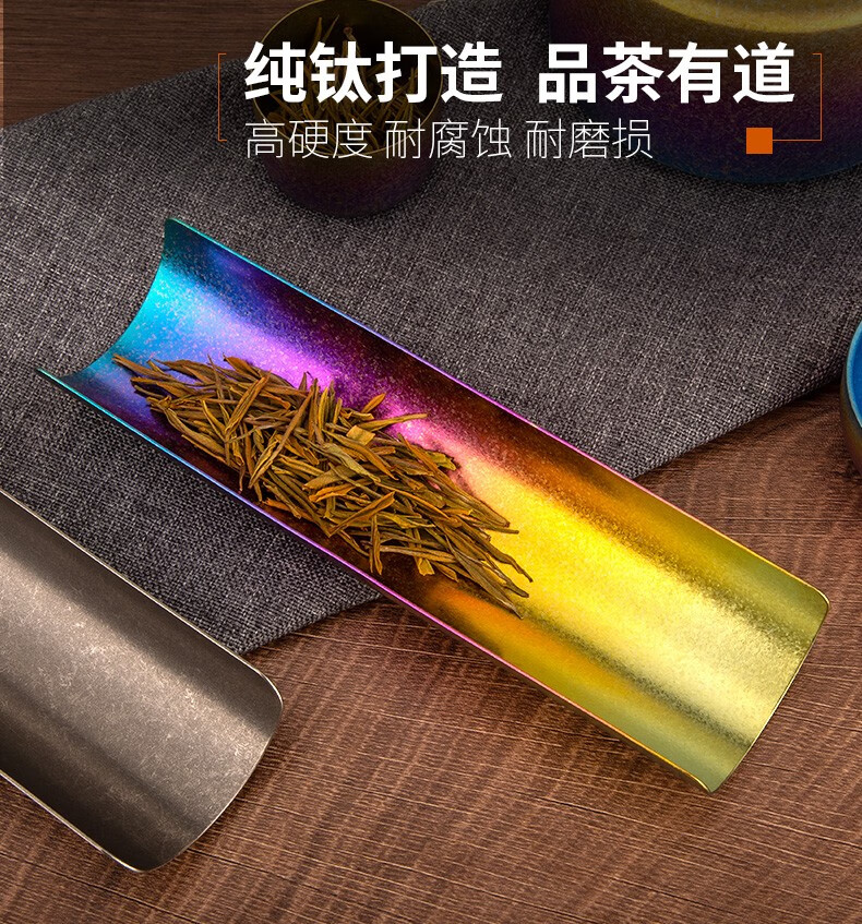 一直想买一个竹制茶则,最终还是选择了这款全环境的钛茶则,不用担心发霉,轻松打理,便携等。做工很不错,有圆润倒角不会割手。冰花炫彩的表面处理,除了养眼,触感也很舒服