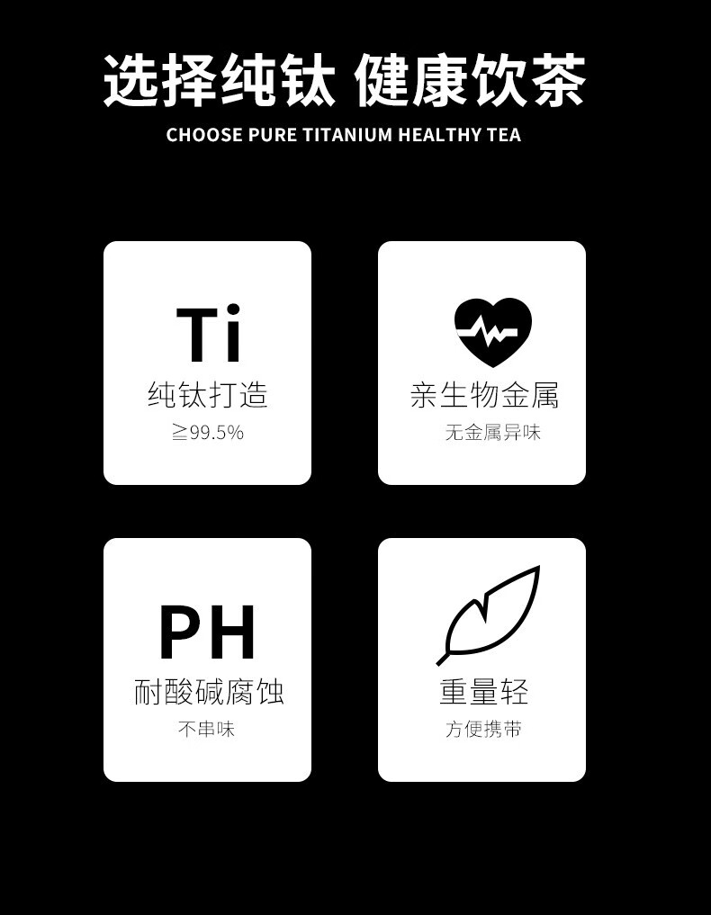 钛途(TITO TITANIUM) 纯钛茶碗99.5%钛合金双层水杯户外功夫茶具餐具旅行用具运动携带 纯钛茶碗-冰花绿色