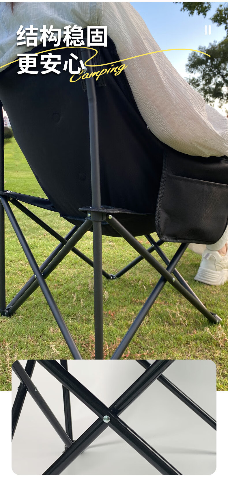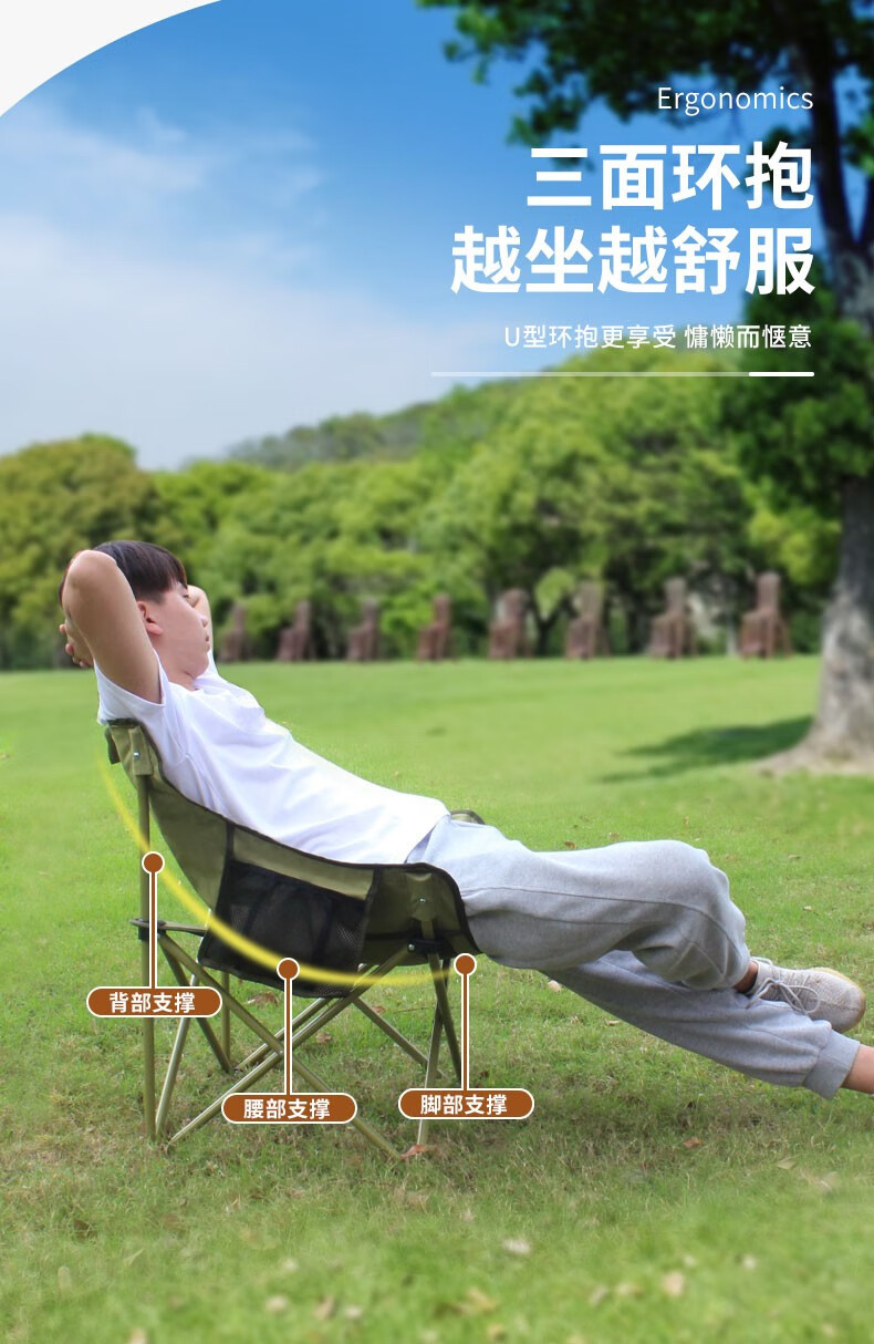 做上去非常舒服,这个月亮椅很好,就是快冬天了没有去外面试一试,在家收起来了,专门买的去外面野餐或者露营使用的,之前买了两把平椅子没有这个好。