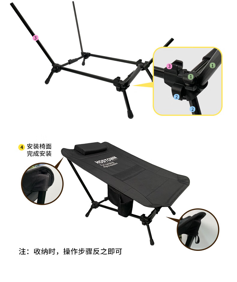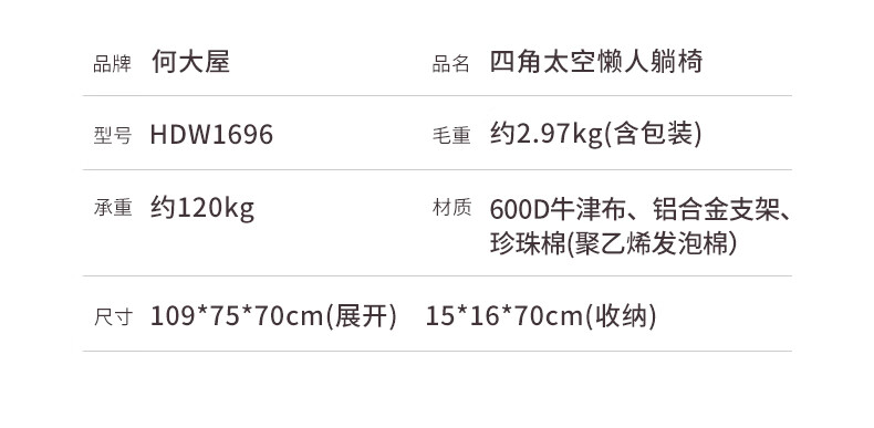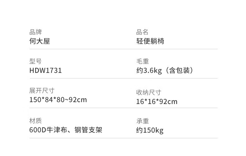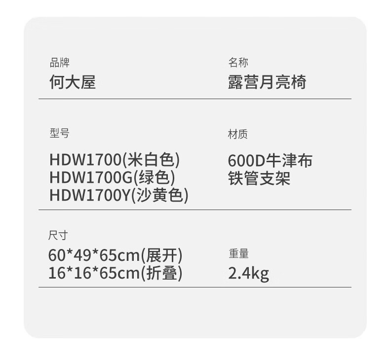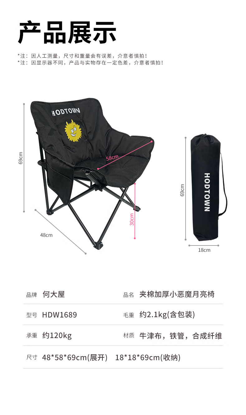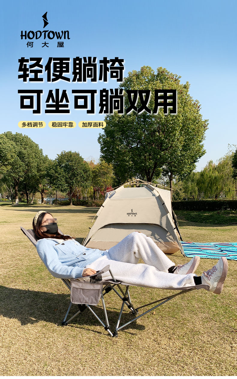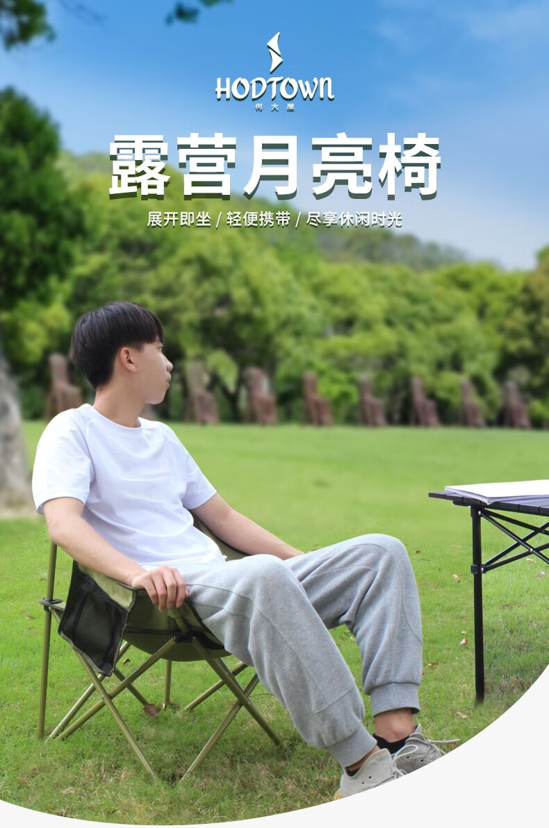 何大屋(Hodtown) 户外折叠椅露营椅子躺椅便携折叠凳钓鱼凳布面加厚月亮椅 露 营月亮椅 HDW1700