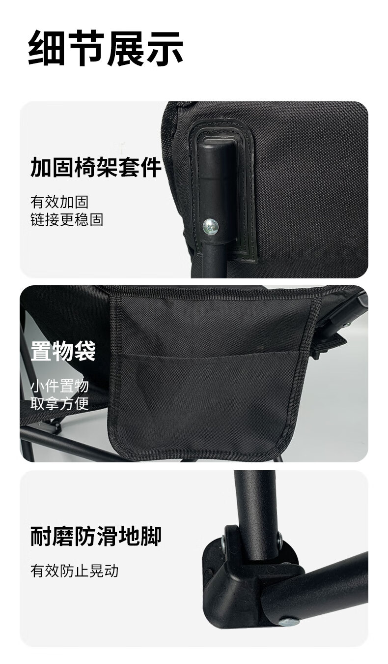 椅子做工精细,材质优良,坐上感觉非常稳固。携带方便,好用,货真价实