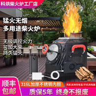 科烘无烟柴火灶新款庭院户外便携烧烤别墅气化猛火柴火炉具316L不锈钢 科烘新款豪华版柴火炉+锅架