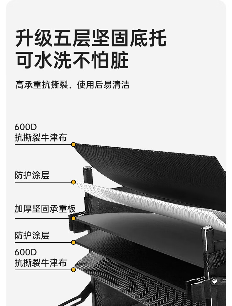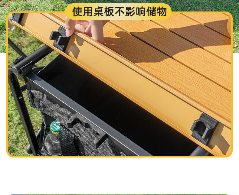 疆屿户外露营营地拖车配件铝合金桌板桌面露营用品折叠小推车盖板桌子 黄木纹【碳钢桌面】聚拢款