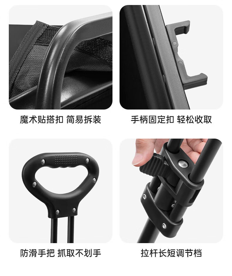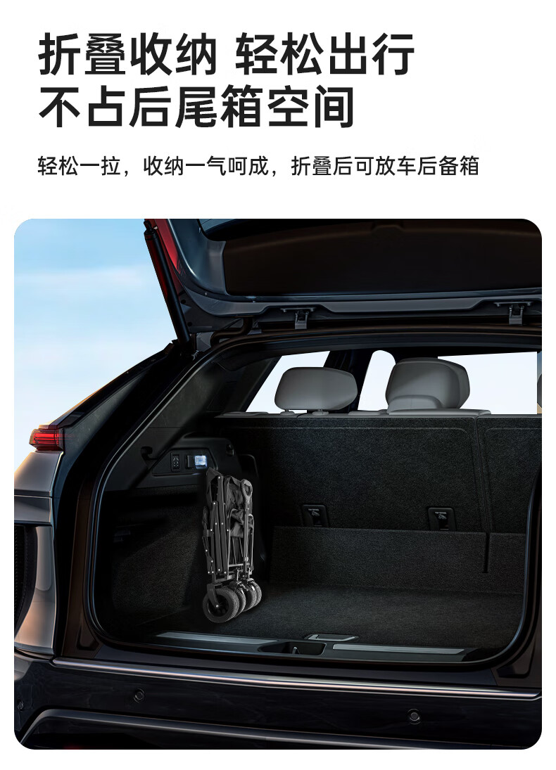 前面轮子是万向轮,拉着走方向易掌握。折叠方便,收纳不占空间。尾部可打开,扩展了空间。本来我是骨折住院了买的,出院的时候拉着所有的东西,非常实用,省得一趟一趟往下提了。没想到,回来成了孩子的乐园。