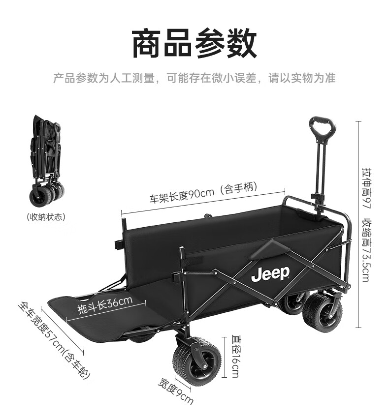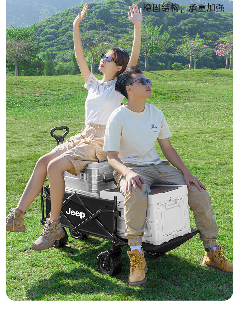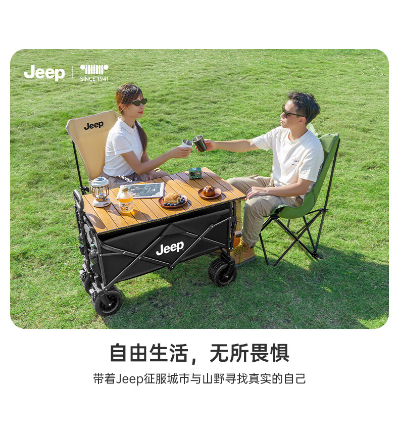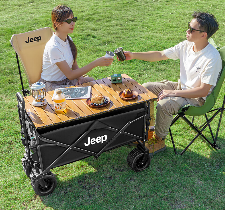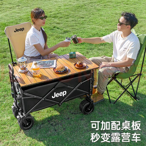 JEEP户外露营折叠车野餐车营地车露营装备便捷拖车推车购物 旅游买菜 5寸桌板碳钢木纹