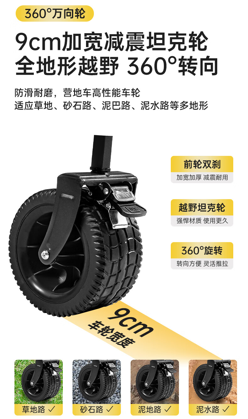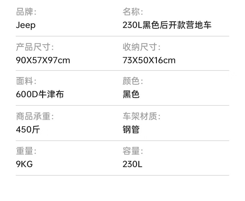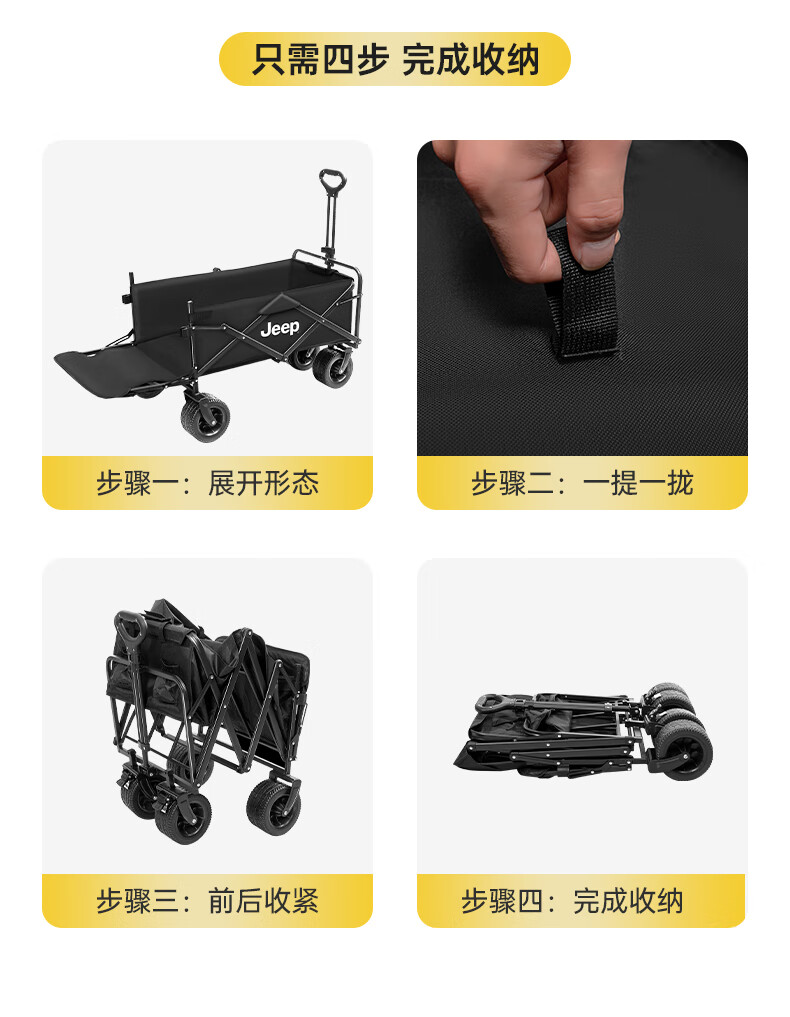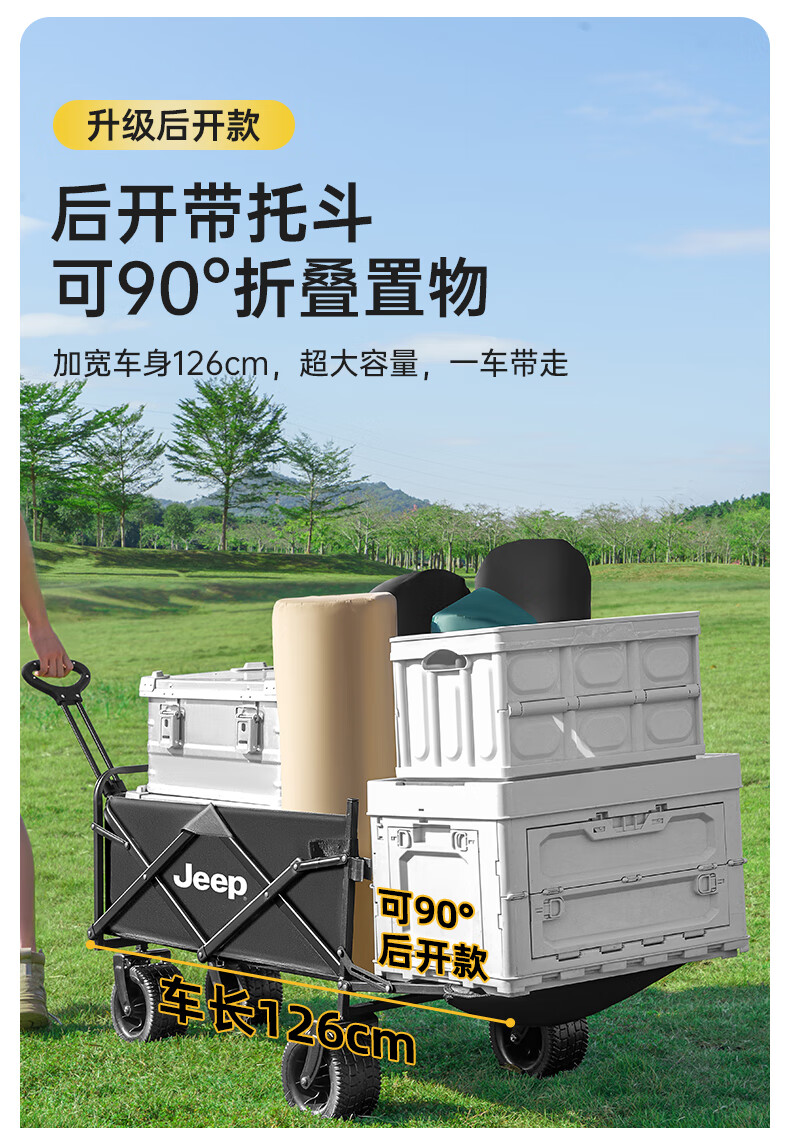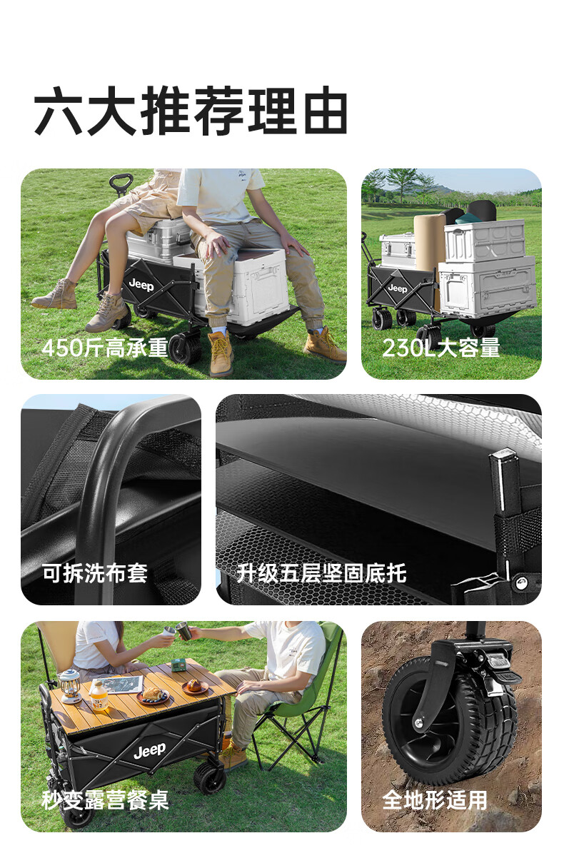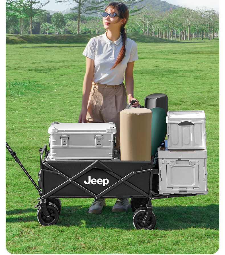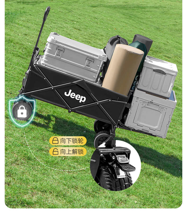 JEEP吉普露营推车可折叠户外手推野餐车营地拖车拉杆小拉车野营车 8寸加厚桌板