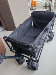 车子不错!很扎实,碳钢框架材质,18寸的轮子很宽,可同时即推又拉,与网页描述一致,桌面也是的碳钢的,收纳方便。毕竟是品牌,值得信赖!非常满意的产品!