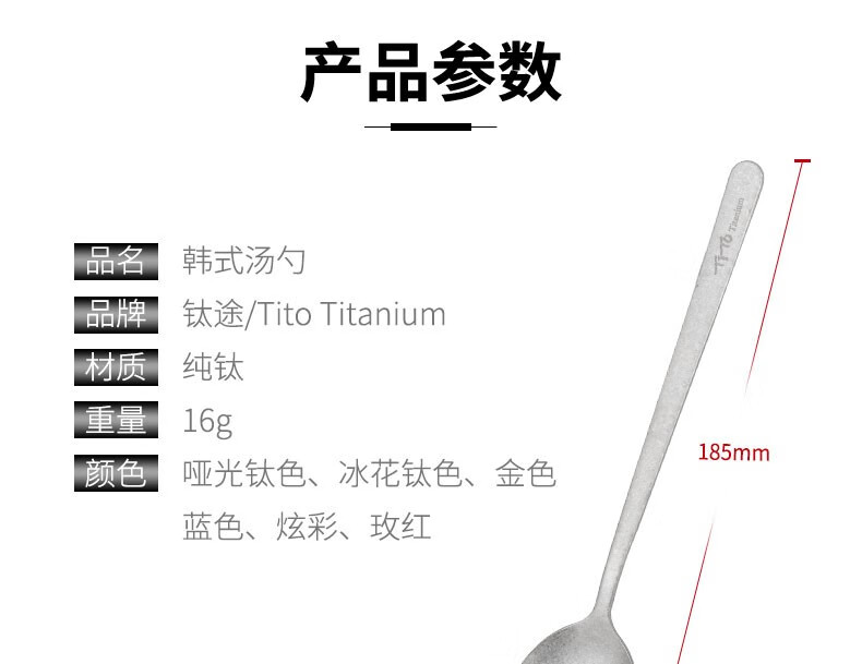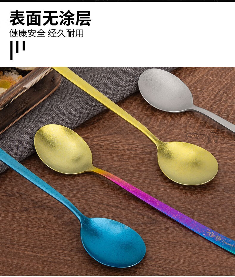 钛途(TITO TITANIUM) 纯钛韩式勺99.5%钛合金家用户外野营餐具厨具勺子调羹 纯钛韩式勺-冰花炫彩-盒装