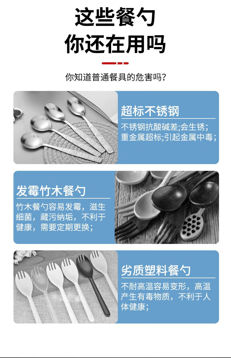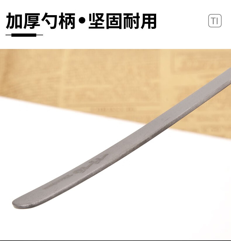 钛合金因具有强度高、耐蚀性好、耐热性高等特点,现在户外用品很多都用钛合金。原来用的是一把不锈钢勺,因为消毒柜把漆烤脱落了,所以换了这把钛合金勺子。