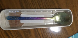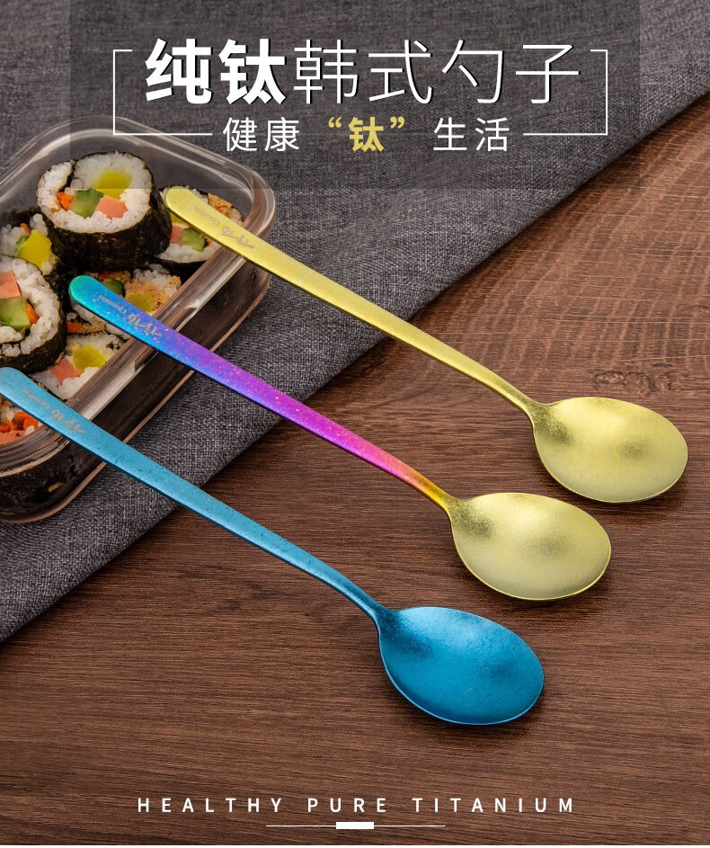 冰花炫彩韩式钛质小勺收到,颜色看着五颜六色,挺漂亮的。包装很好,用小盒子装的,挺显档次。商家很给力,刚下单库房就发货了,快递也很快,第二天就送达了。谢谢!
