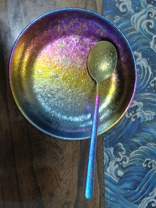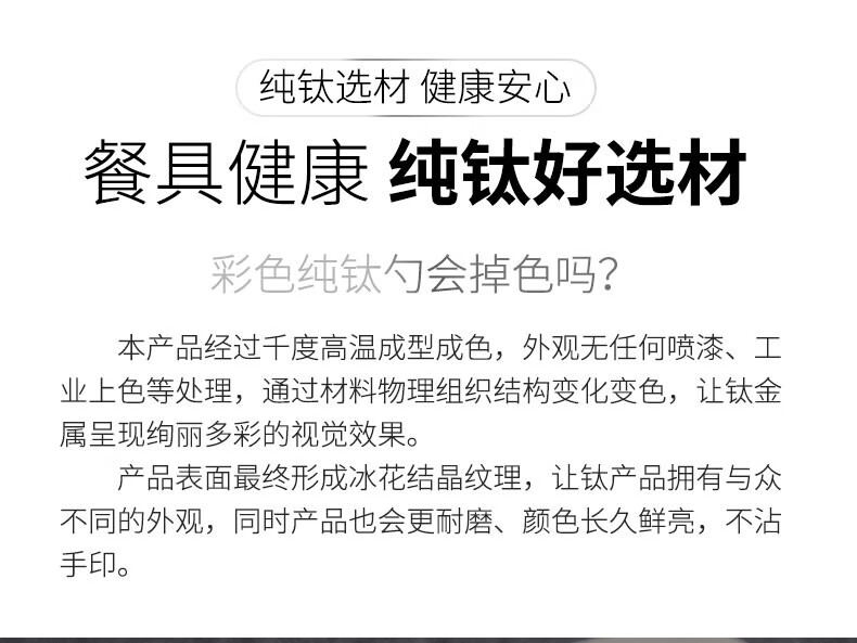 钛途(TITO TITANIUM)纯钛叉勺0.8mm99.5%钛合金家用户外野营餐具厨具叉子勺子 暮光冰花璀璨炫彩-钛勺