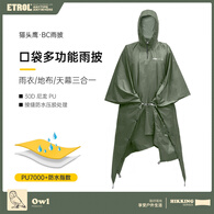 ETROL'户外雨披徒步骑行登山超轻雨衣露营防水防雨斗篷三合一天幕 丛林绿【单件】
