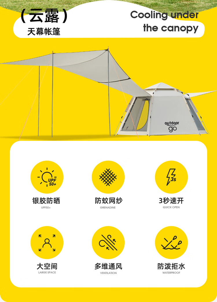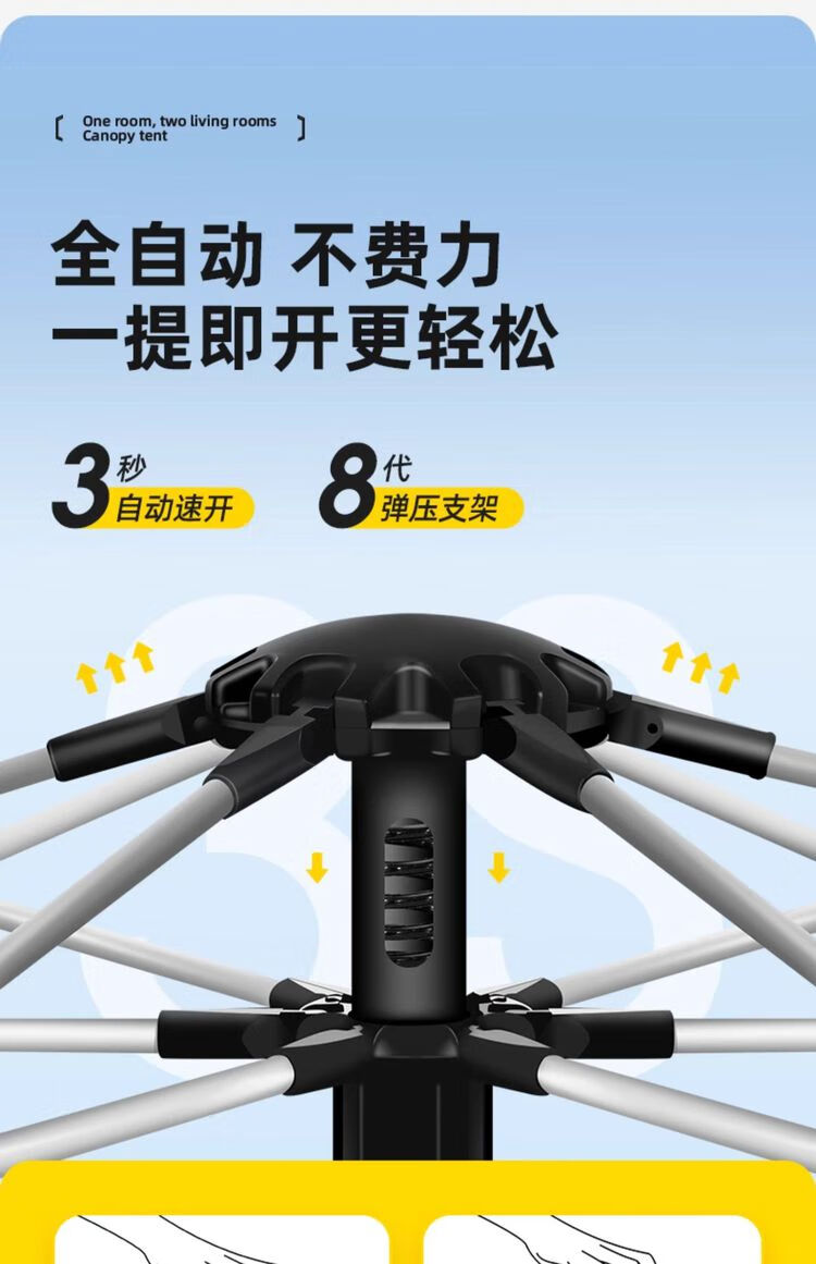 何佳功新燕尾天幕户外露营懒人免安装加厚黑胶防晒遮阳防雨速搭天幕 速搭型12㎡银胶天幕3.3*3.6米2-4人(1
