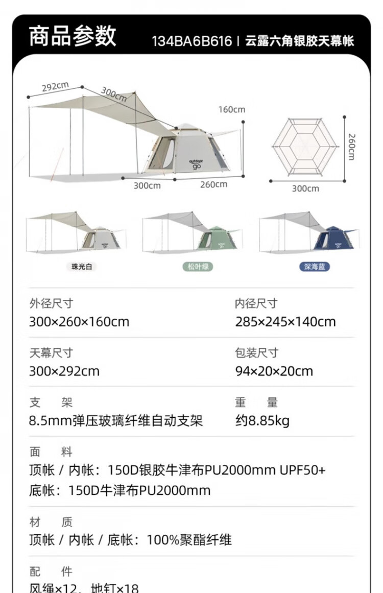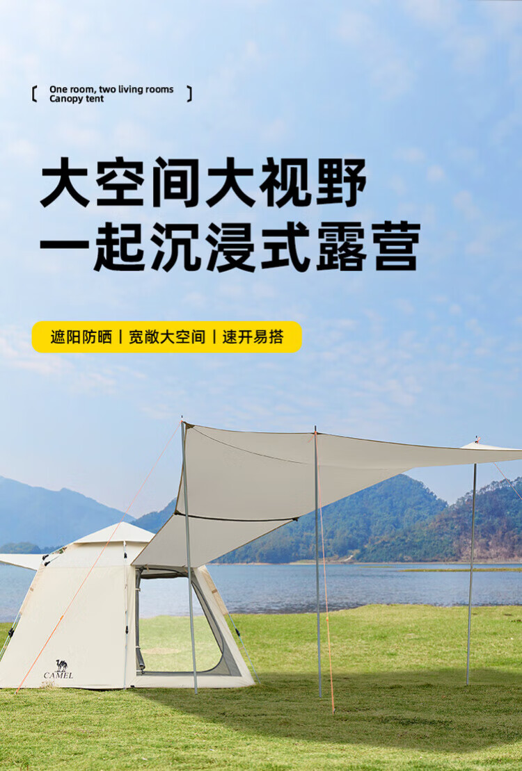 骆驼 户外天幕帐篷银胶防晒便携露营防风野营过夜公园露营 珠光白 134BA6B616