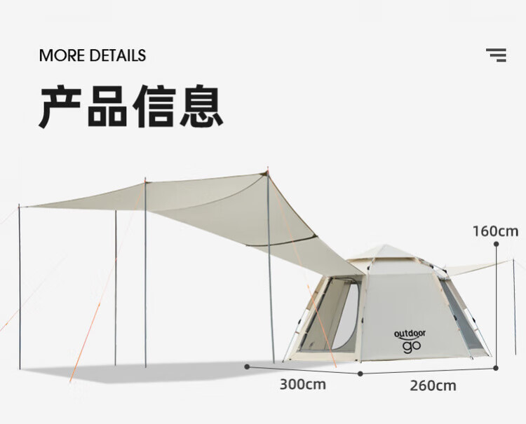 三只小驴(Three Donkeys)速开自动穹顶天幕帐篷户外免搭建遮阳棚防晒防 投影布 5-8人