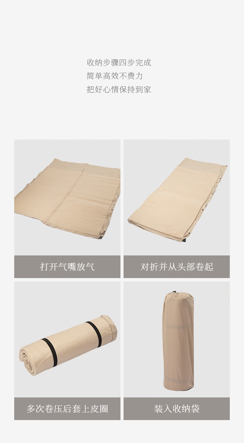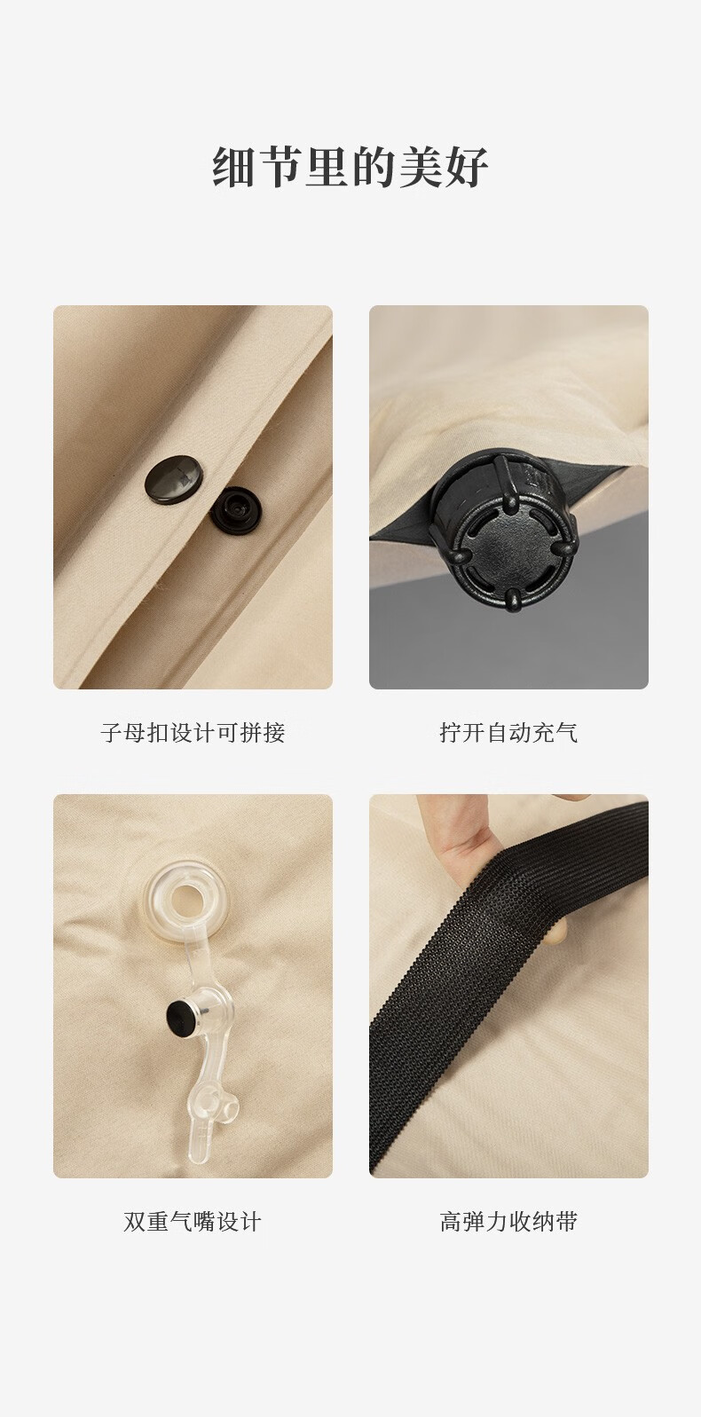 云伴(YUNBAN)自动充气床垫户外露营野餐垫气垫床便携式打地铺防潮垫露营装备 卡其色加大三人款【3cm】