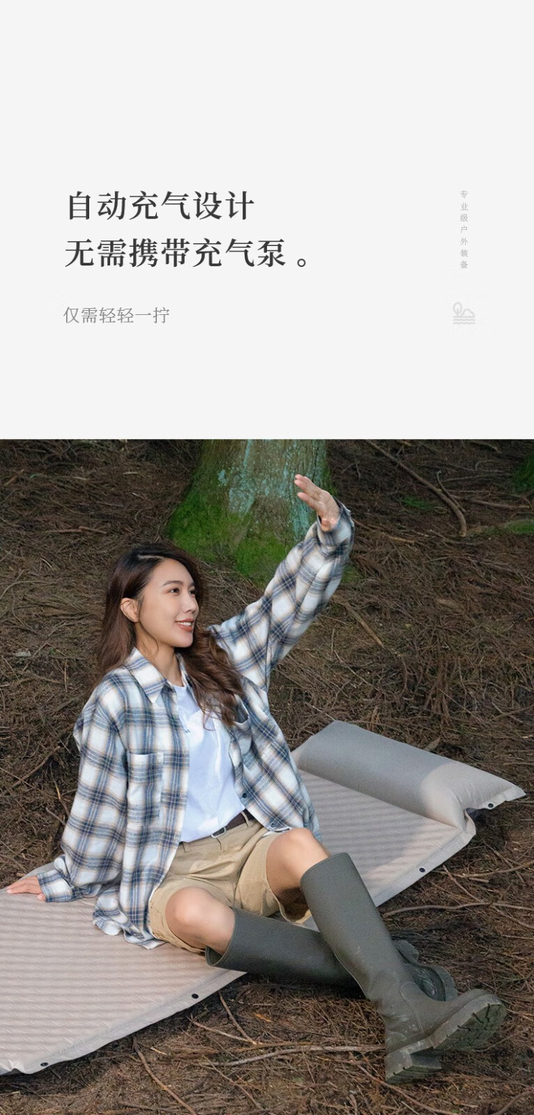 探险者充气床垫午休垫自动气垫床露营垫户外便携加厚睡垫防潮垫野餐垫 卡其5CM自动充气午休垫