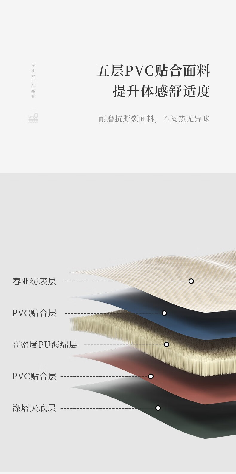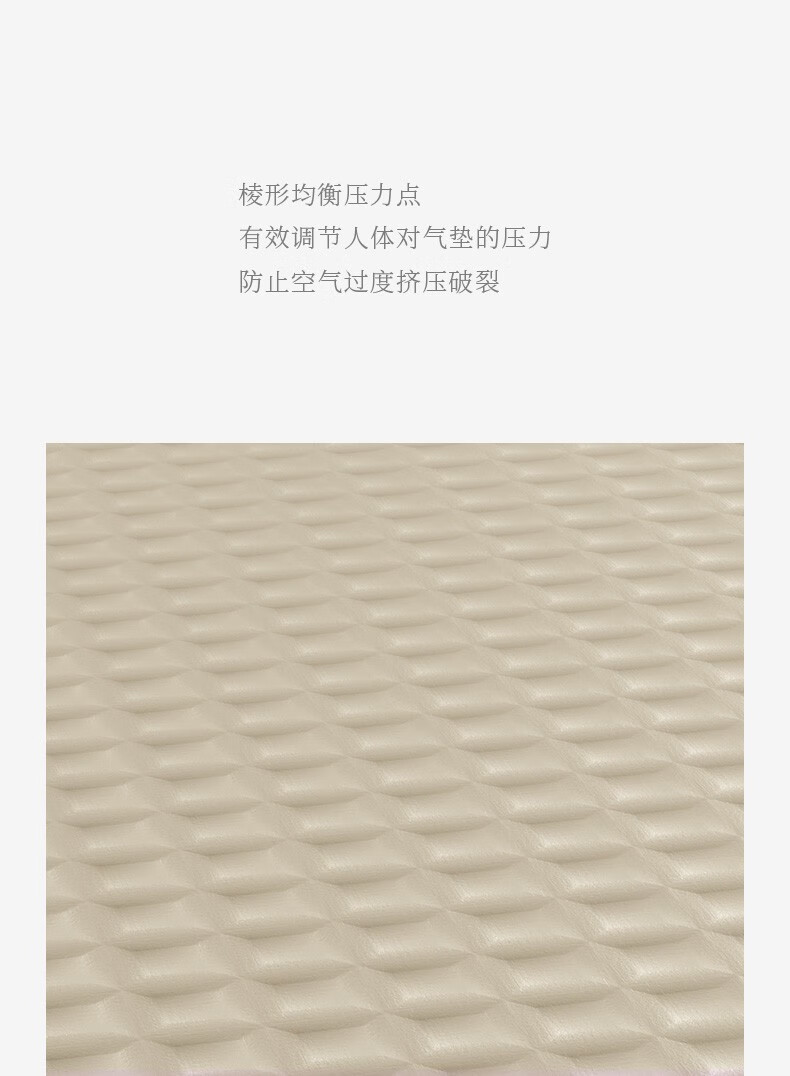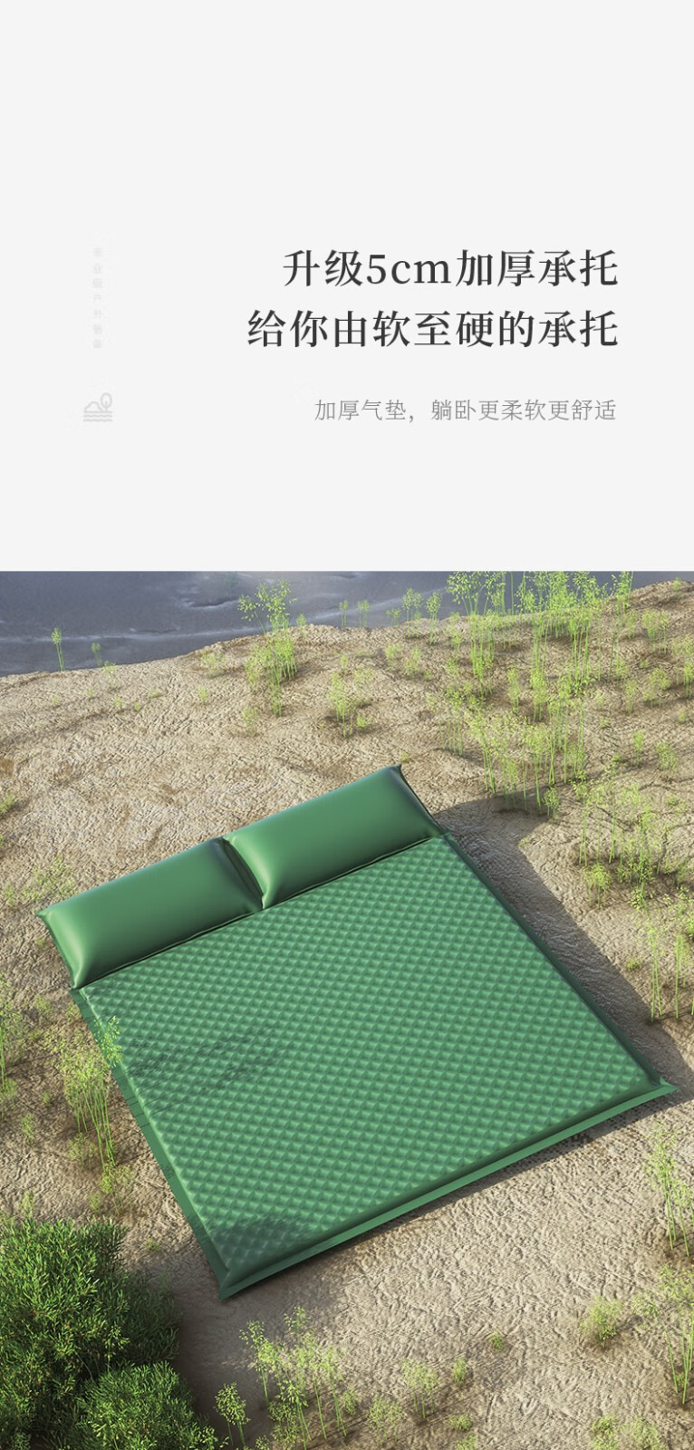 床垫非常舒服,孩子很喜欢,在场镇上打闹嬉戏来回翻滚都勾搭,本来有5厘米厚的垫子就已经足够了,充气后绵软、还有一定弹性,防潮舒适,不塌腰、透气好,不透水,超级喜欢!