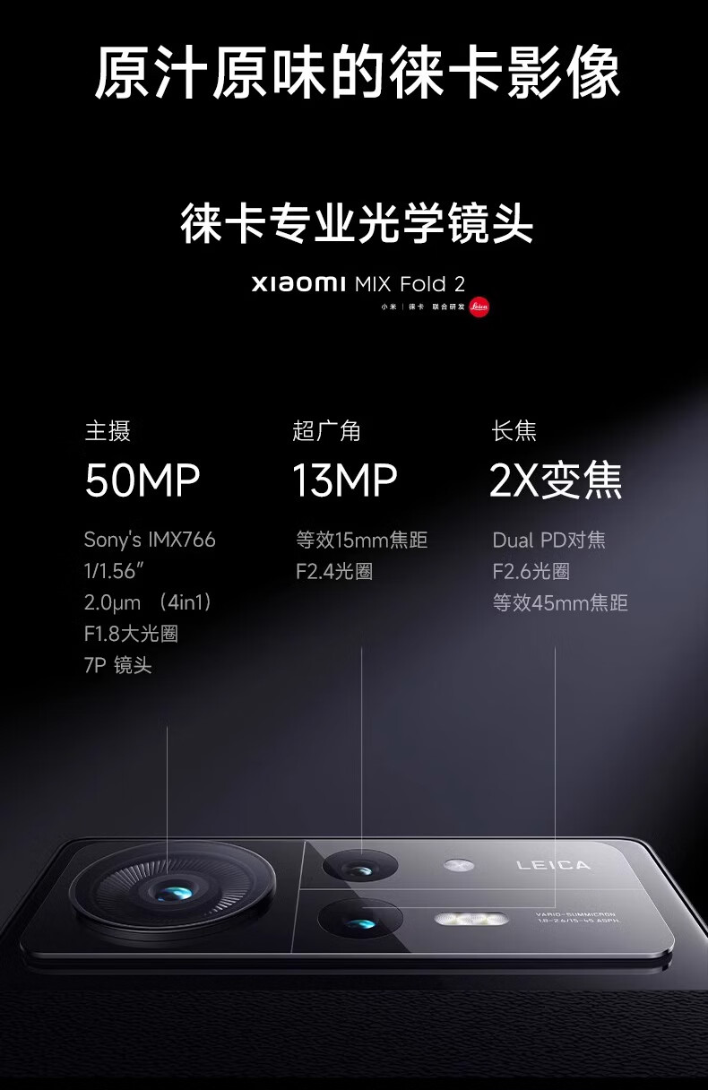 小米Xiaomi MIX FOLD 2 5G折叠屏手机龙骨转轴徕卡光学全焦 玄夜黑 95+_12GB+512GB