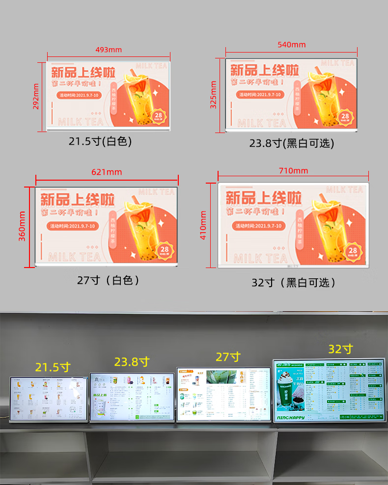畅视达 电子菜单显示屏桌面菜单显示屏菜单展示牌电子餐牌电竞网咖桌球奶茶店吧台价格目录屏 21.5英寸白色电子菜单屏高配L3 900高亮